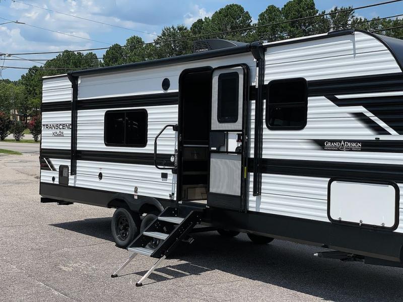 The customer-focused, quality-built Transcend Xplor travel trailers by Grand Design are your ticket to fun and adventure. You will appreciate the power tongue jack when it comes time to set up, as well as the all-in-one utility center and the detachable power cord with an LED light. These models include many outlets throughout, USB ports to charge your gadgets, and a JBL exterior speaker to listen to your favorite tunes. The interior of the Transcend Xplor will have you feeling right at home with upgraded residential furniture, residential countertops, residential cabinet doors, and the list goes on!