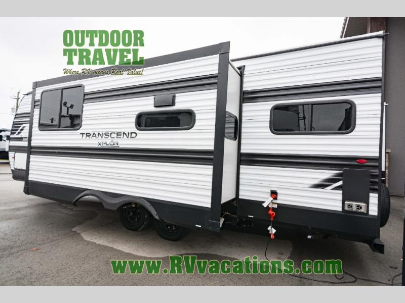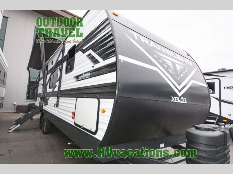 The customer-focused, quality-built Transcend Xplor travel trailers by Grand Design are your ticket to fun and adventure. You will appreciate the power tongue jack when it comes time to set up, as well as the all-in-one utility center and the detachable power cord with an LED light. These models include many outlets throughout, USB ports to charge your gadgets, and a JBL exterior speaker to listen to your favorite tunes. The interior of the Transcend Xplor will have you feeling right at home with upgraded residential furniture, residential countertops, residential cabinet doors, and the list goes on!