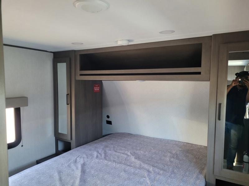 Your search for the perfect couple's trailer is over with this RV in tow! You will enjoy your own private bedroom up front with a queen bed, overhead storage, and TV prep if you choose to bring along your own television. The spacious full rear bath includes a linen closet and a walk-in shower to easily clean up each day. Relax on the theatre seating after a long day outdoors, or you can choose the optional sleeper sofa if you need additional sleeping space. The booth dinette can also be used for an overnight guest or two little ones. This model also includes plenty of storage space and plenty of counter space to prep and cook at-home meals!
