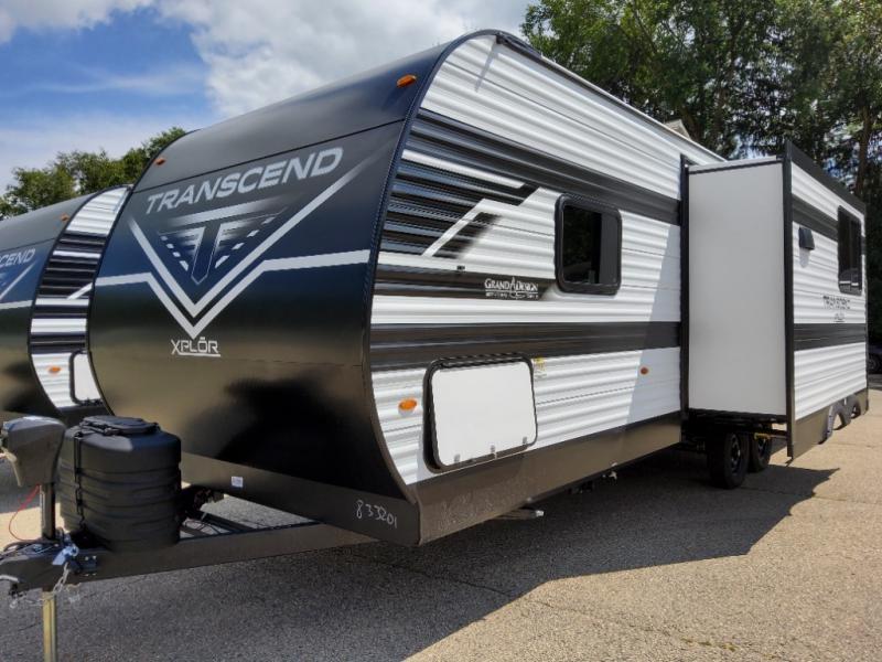 The customer-focused, quality-built Transcend Xplor travel trailers by Grand Design are your ticket to fun and adventure. You will appreciate the power tongue jack when it comes time to set up, as well as the all-in-one utility center and the detachable power cord with an LED light. These models include many outlets throughout, USB ports to charge your gadgets, and a JBL exterior speaker to listen to your favorite tunes. The interior of the Transcend Xplor will have you feeling right at home with upgraded residential furniture, residential countertops, residential cabinet doors, and the list goes on!