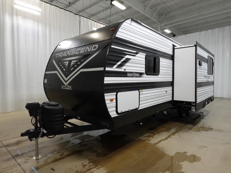 The customer-focused, quality-built Transcend Xplor travel trailers by Grand Design are your ticket to fun and adventure. You will appreciate the power tongue jack when it comes time to set up, as well as the all-in-one utility center and the detachable power cord with an LED light. These models include many outlets throughout, USB ports to charge your gadgets, and a JBL exterior speaker to listen to your favorite tunes. The interior of the Transcend Xplor will have you feeling right at home with upgraded residential furniture, residential countertops, residential cabinet doors, and the list goes on!