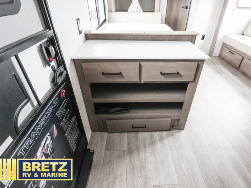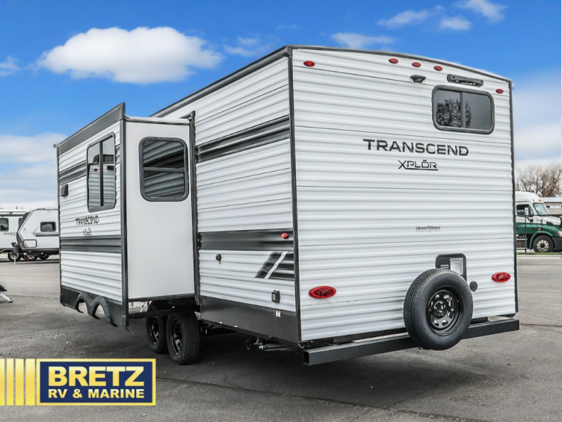 The customer-focused, quality-built Transcend Xplor travel trailers by Grand Design are your ticket to fun and adventure. You will appreciate the power tongue jack when it comes time to set up, as well as the all-in-one utility center and the detachable power cord with an LED light. These models include many outlets throughout, USB ports to charge your gadgets, and a JBL exterior speaker to listen to your favorite tunes. The interior of the Transcend Xplor will have you feeling right at home with upgraded residential furniture, residential countertops, residential cabinet doors, and the list goes on!
