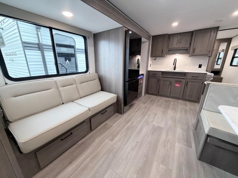 Camping with family and friends is easy in the Transcend Xplor 26BHX, offering sleeping space for up to nine. Double-size bunks provide room for four, while the 60" roll-over sofa and booth dinette convert into additional sleeping areas. The front semi-private bedroom with a queen bed gives you a comfortable, dedicated retreat at the end of the day.