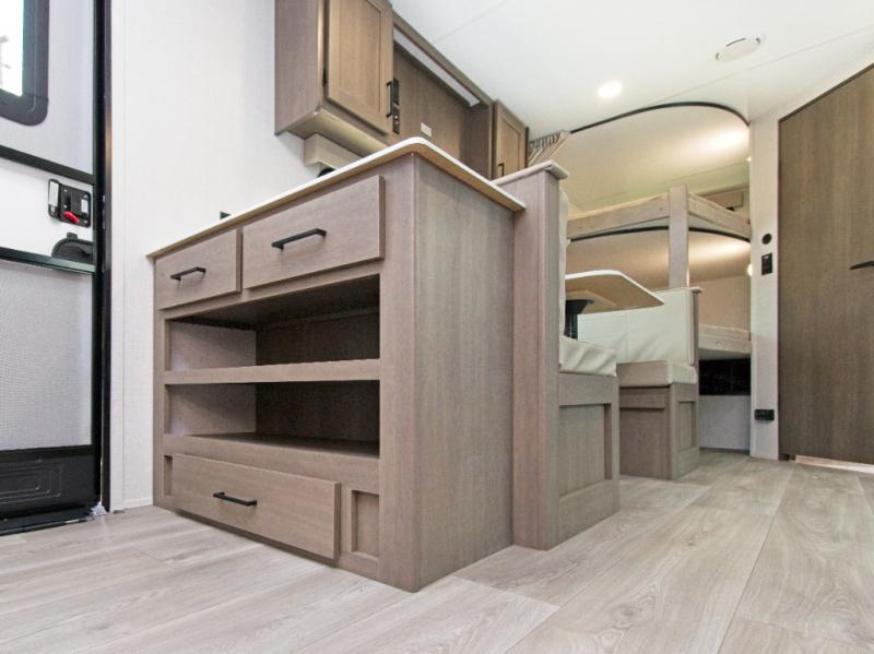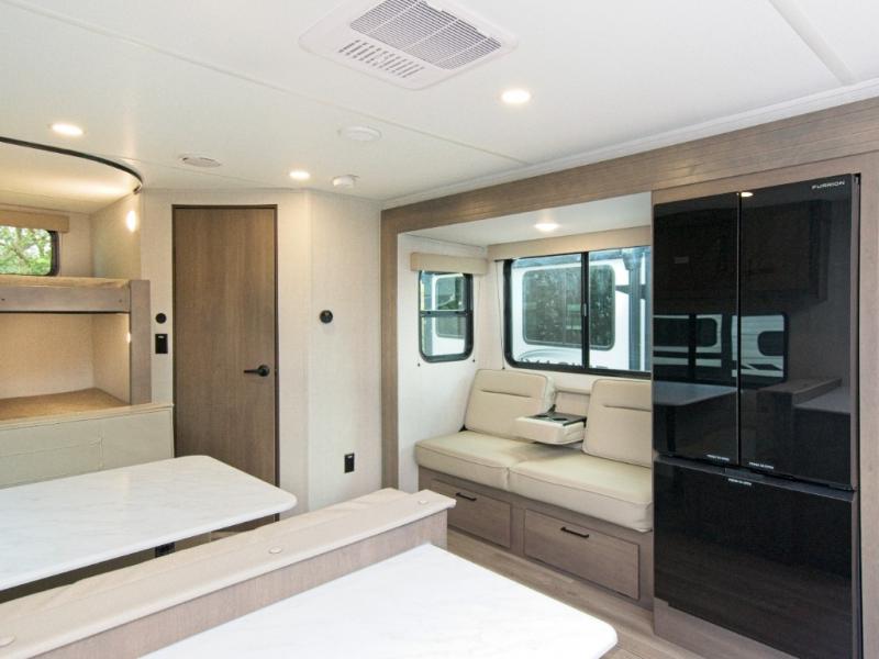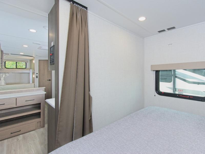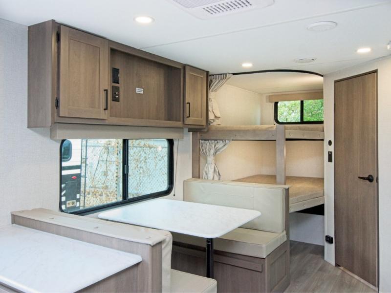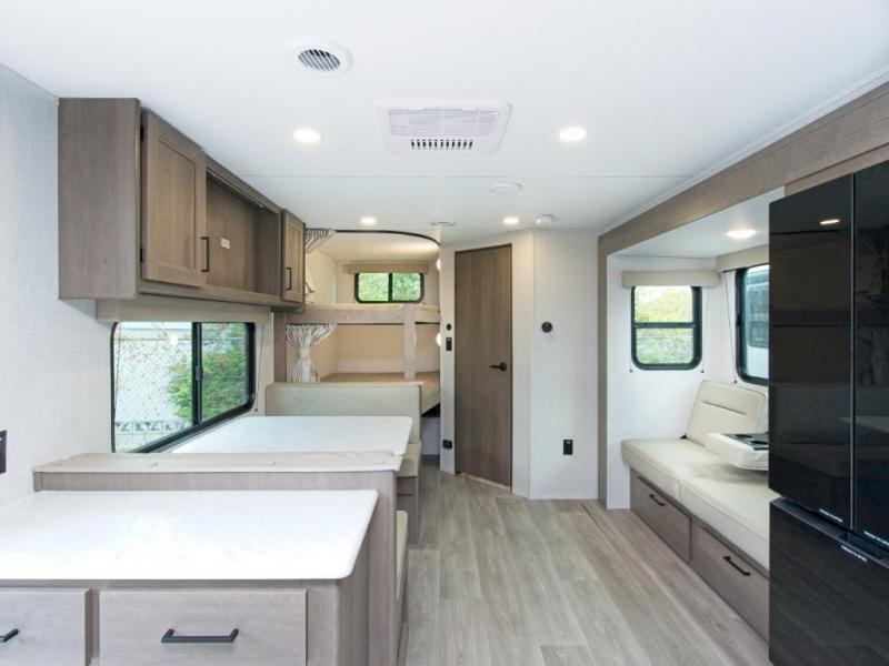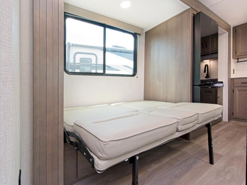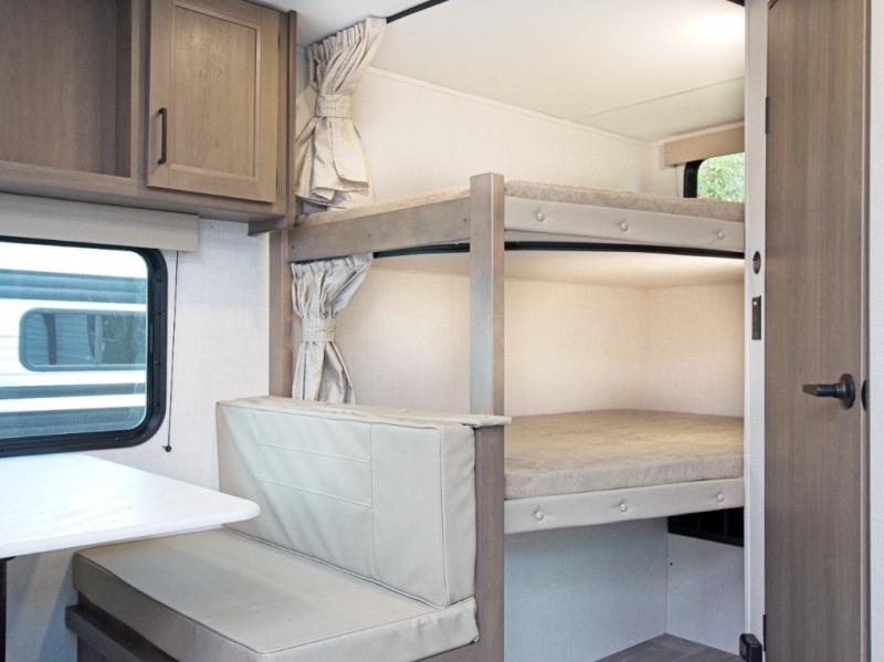 The Transcend Xplor 26BHX by Grand Design is built to handle your family’s next big adventure. With sleeping space for up to nine, including double-size rear bunks, a queen bed, a roll over sofa, and a convertible booth dinette, everyone has a place to rest. The full bathroom is conveniently located near the bunks, making nighttime routines easy for kids and guests.