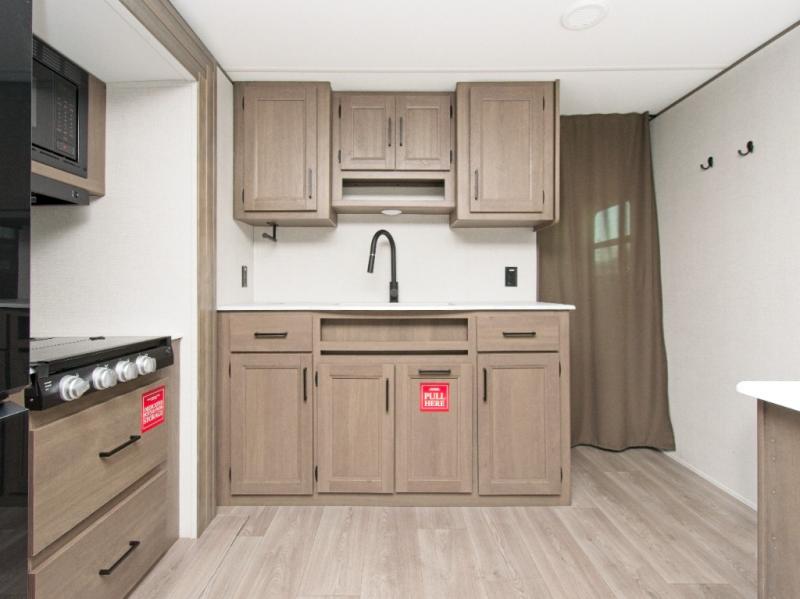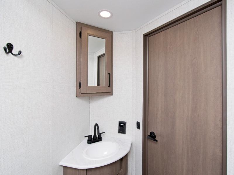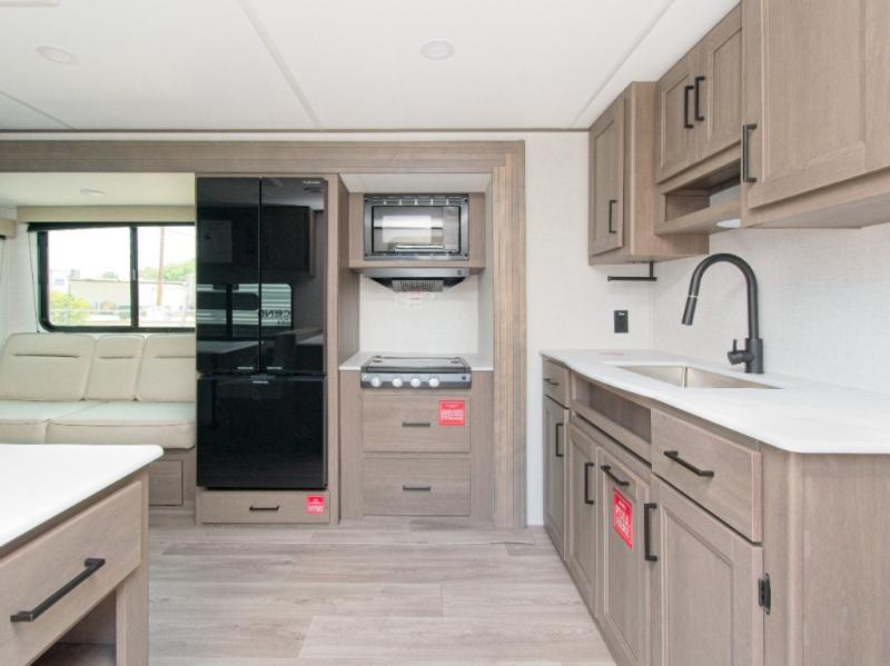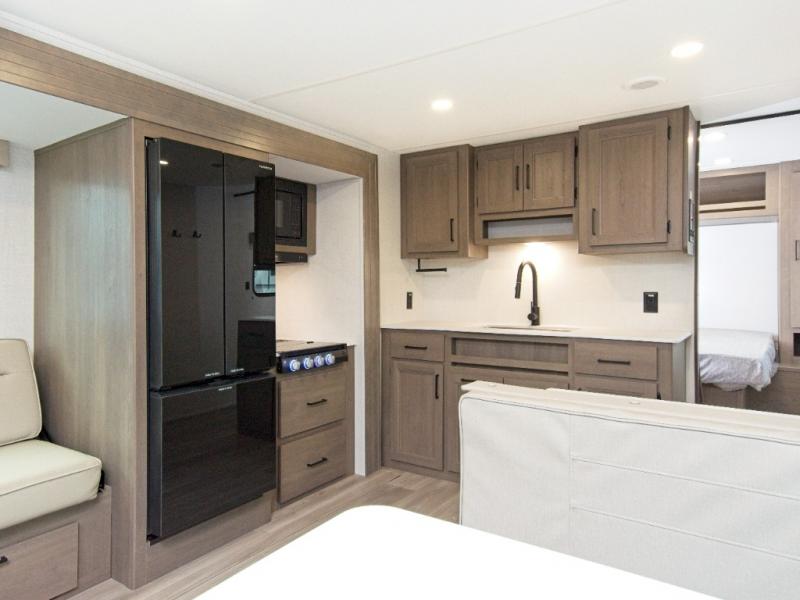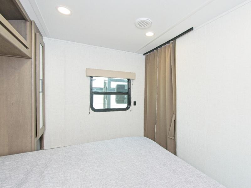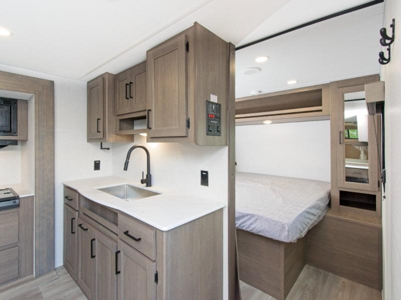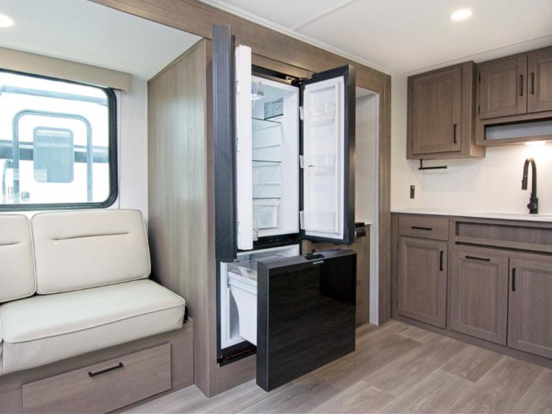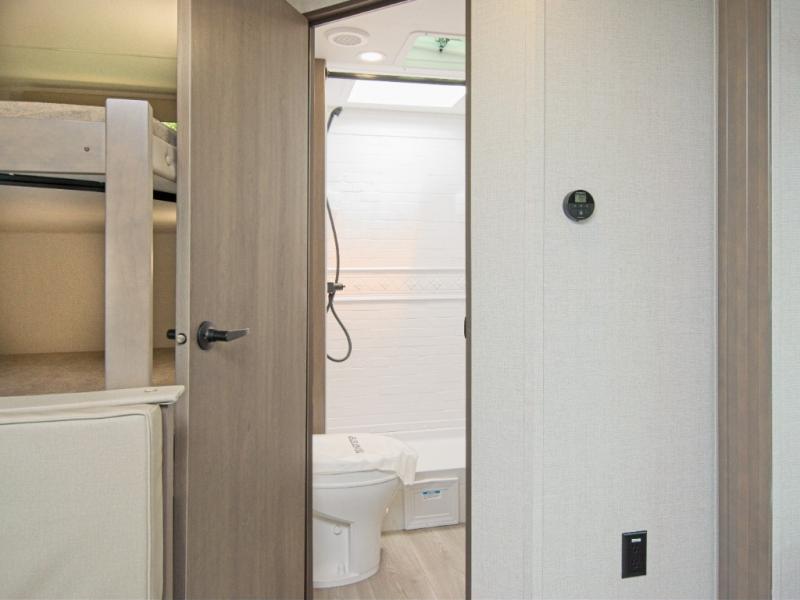 The Transcend Xplor 26BHX by Grand Design is built to handle your family’s next big adventure. With sleeping space for up to nine, including double-size rear bunks, a queen bed, a roll over sofa, and a convertible booth dinette, everyone has a place to rest. The full bathroom is conveniently located near the bunks, making nighttime routines easy for kids and guests.