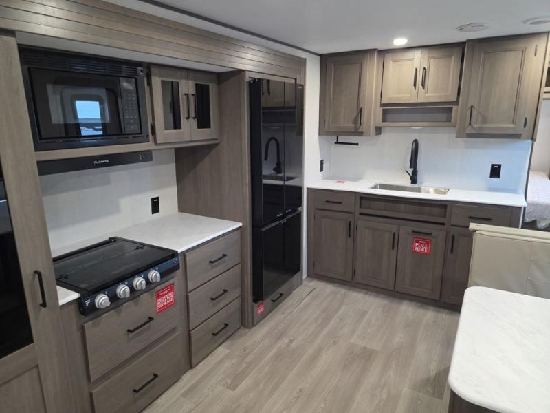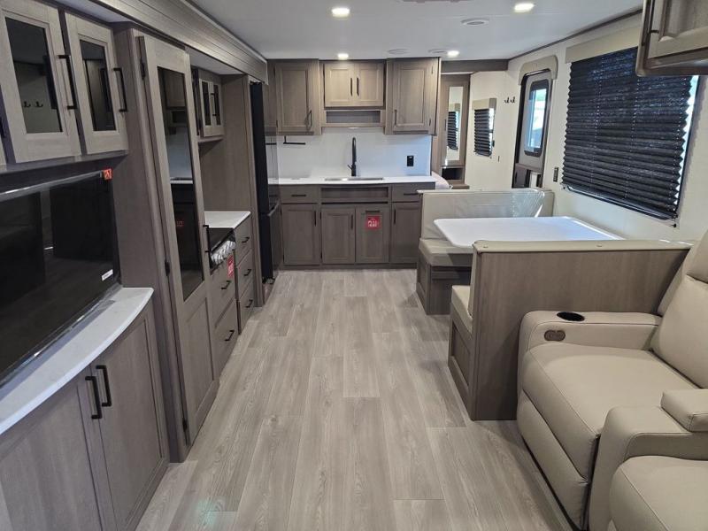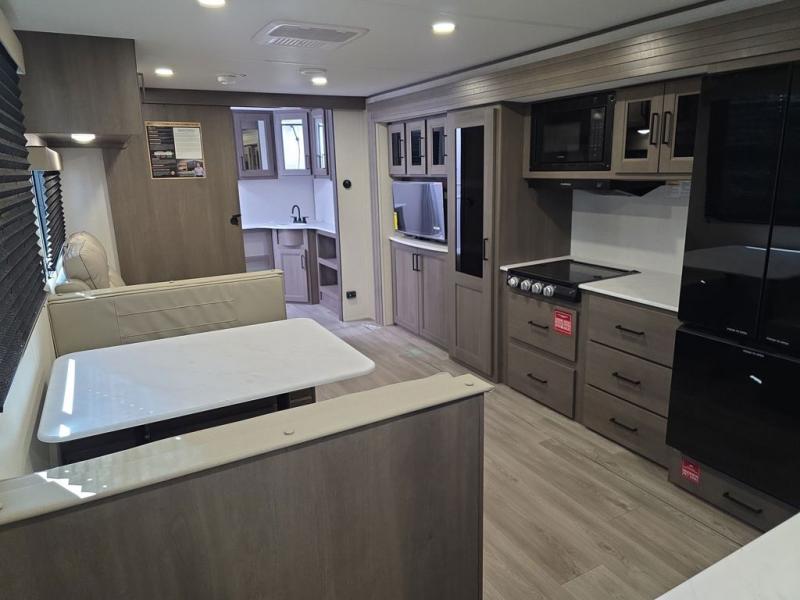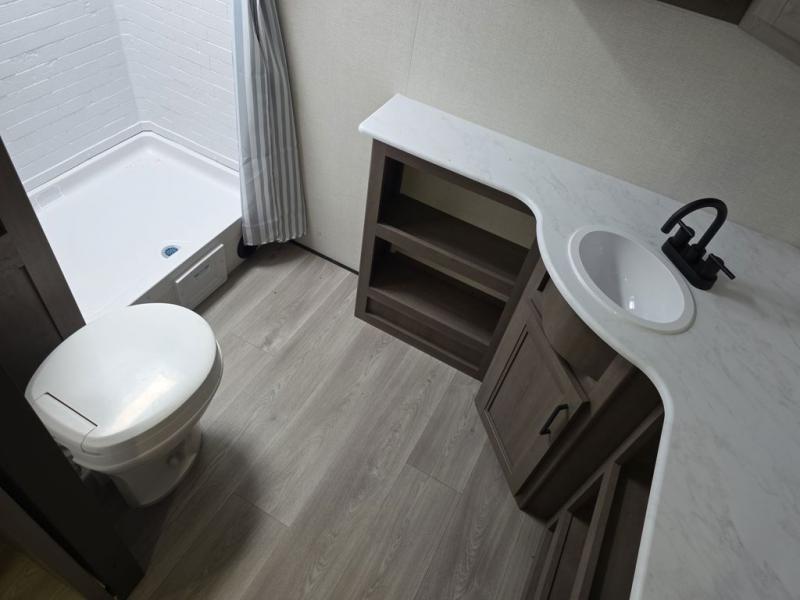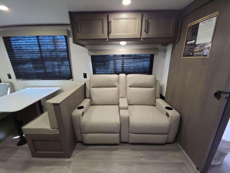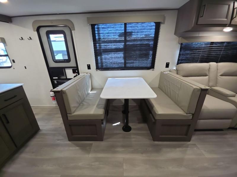 Your search for the perfect couple's trailer is over with this RV in tow! You will enjoy your own private bedroom up front with a queen bed, overhead storage, and TV prep if you choose to bring along your own television. The spacious full rear bath includes a linen closet and a walk-in shower to easily clean up each day. Relax on the 60" sleeper sofa after a long day outdoors, or you can choose the optional theater seating if you don't need additional sleeping space. The booth dinette can also be used for an overnight guest or two little ones. This model also includes plenty of storage space and plenty of counter space to prep and cook at-home meals! Finally relax under the shade of the massive 19' awning.