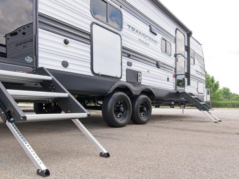 The Transcend Xplor travel trailers by Grand Design are designed with customer satisfaction in mind. Enjoy the ease of the power tongue jack, all-in-one utility center, and detachable power cord with LED light. These models feature numerous outlets, USB ports for charging devices, and a JBL exterior speaker for your favorite tunes. Inside, you'll feel right at home with upgraded residential furniture, countertops, cabinet doors, and more!