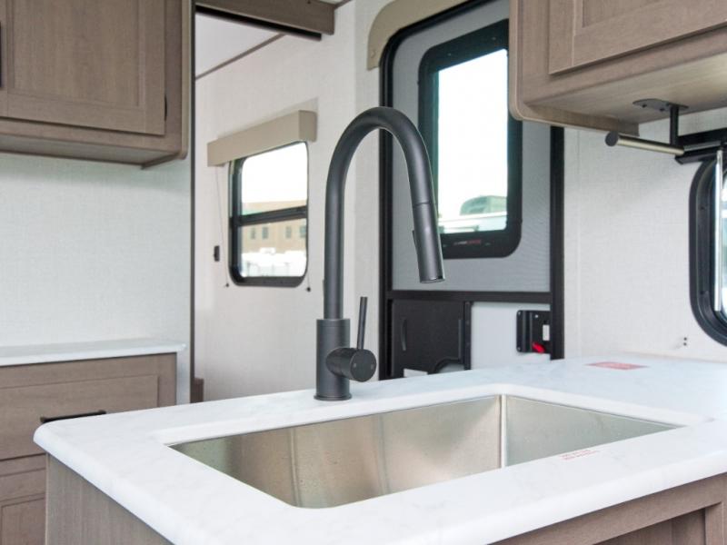 Elevate your adventures with the Grand Design Transcend Xplor 27DBX, featuring a cozy queen bed for ultimate relaxation and a spacious full bathroom to enhance your comfort on the road.