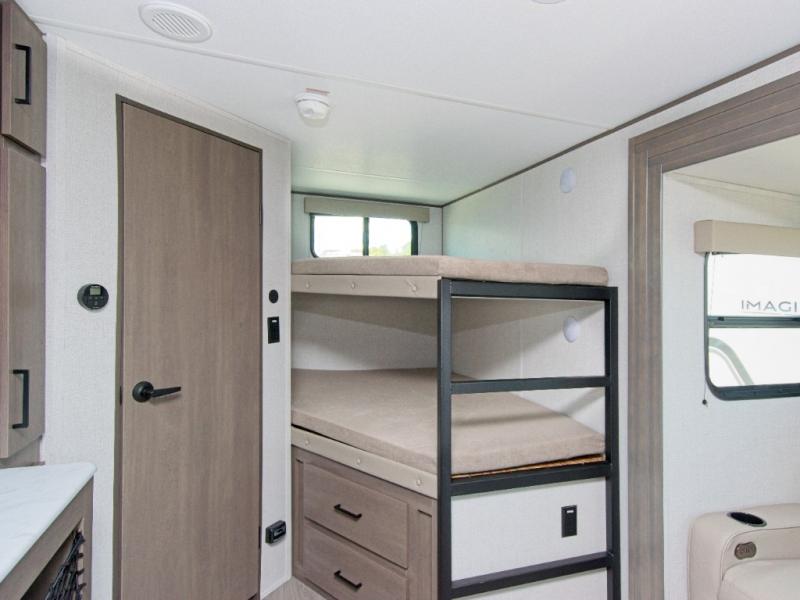 The spacious full bathroom includes a linen closet for added convenience. Kids will love the double-sized bunk beds with curtains and under-bunk storage, providing them with their own cozy retreat.