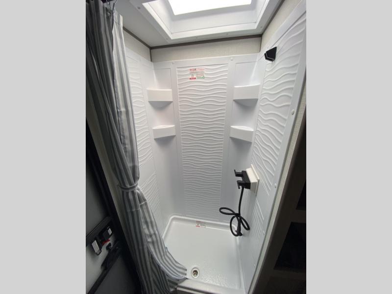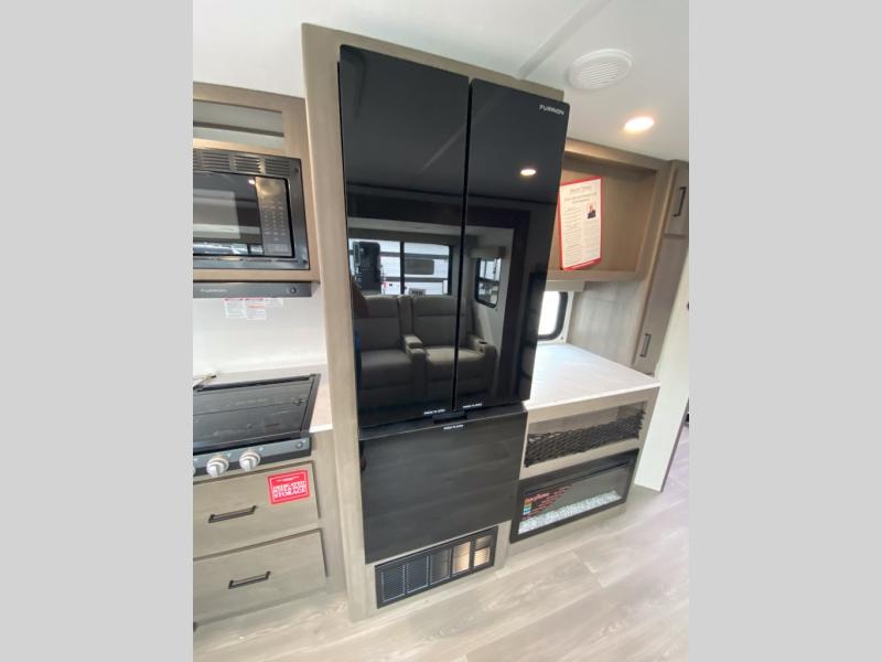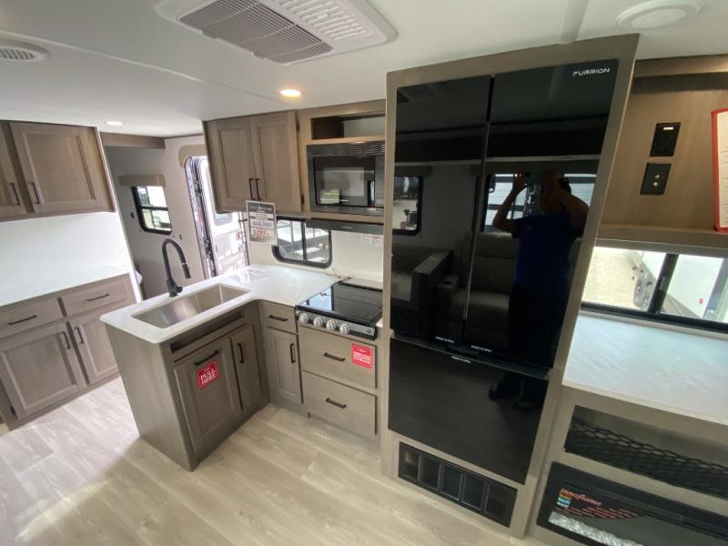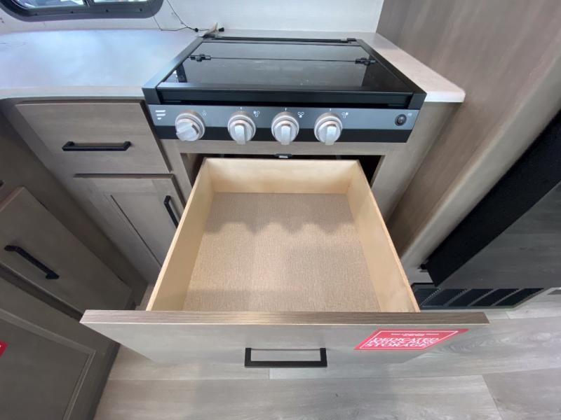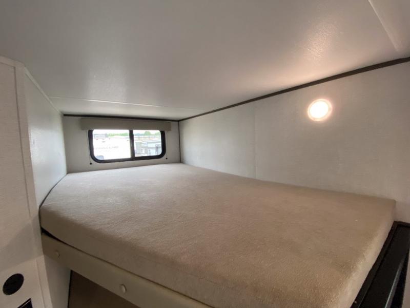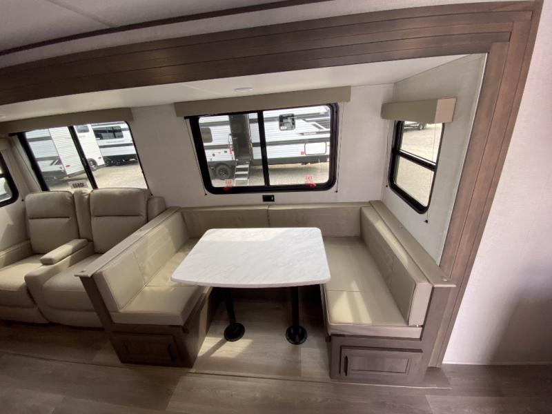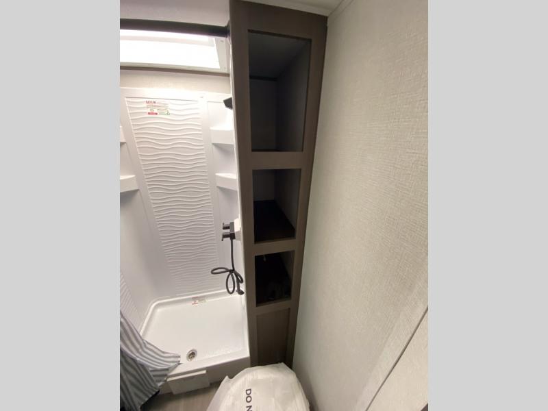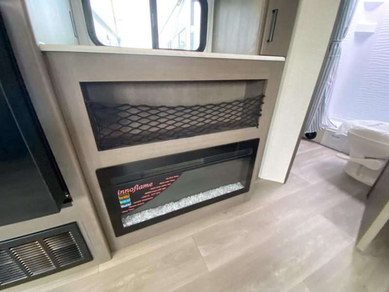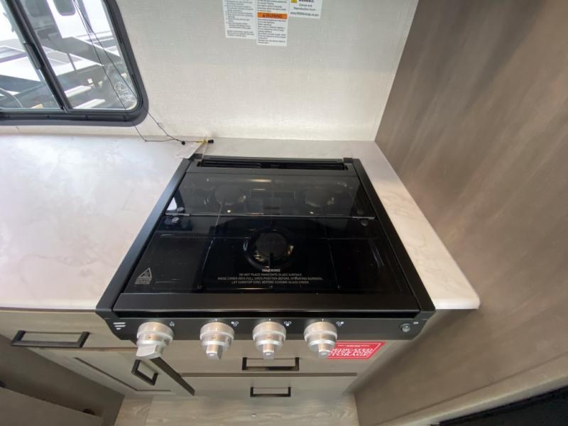 Get ready to take your travels to new heights with our incredible luxury travel trailer! The front bedroom has a queen bed, wardrobe, and overhead cabinets for all your favorite belongings, the perfect place to relax and recharge after a long day of adventure. The living room/kitchen combined area is equipped with a U-shaped dinette, three-burner cooktop, microwave, refrigerator, pantry, and 62” theater seating. Perfect for cooking up your favorite meals, entertaining friends and family, or simply relaxing and enjoying the comforts of home. The full bathroom is spacious and complete with a linen closet for added convenience. And with double-sized bunk beds featuring curtains and under-bunk storage, the kids will have their cozy retreat. But the adventure doesn't stop there! Outside, you'll find an exterior griddle with a 1.7 refrigerator, perfect for cooking up a storm in the great outdoors. And with a massive 19’ awning, you'll have plenty of shade and protection from the elements, plus, with two entry/exit doors and pass-through storage, you'll have easy access to the trailer and all your gear.