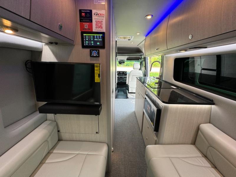 The Strada-ion Class B diesel motorhomes include Grech RV's commitment to excellence through uncompromising efforts to build a beautiful and reliable coach with luxury amenities and the highest level of standard equipment. Some of these features include an air suspension which provides the smoothest and most luxurious ride possible, a custom fiberglass body kit, and a concealed stainless steel utility center. Inside, you will love the Quartz countertop, the Ultraleather rear seating surfaces, the Swiss Chrono hardwood cabinets with radius doors, and the diesel-powered Timberline system that offers a tankless hot water heater, furnace and heating. Probably the most enticing feature found on the Strada-ion is the Lithium-ion Power Package. This package comes with Lithionics lithium batteries (12V), an integrated battery management system, an auxiliary 280 AMP alternator with wakespeed regulator, and a 3,000W Xantrex inverter. All of this provides your coach with clean and quiet energy in the place of a standard generator.
