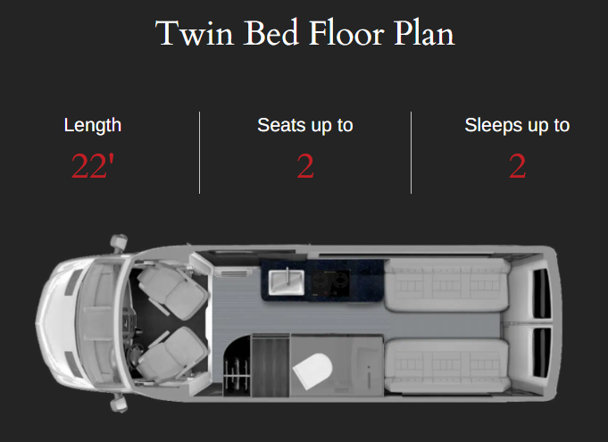 Versatile Living Space: The Strada-ion Twin has versatile seating and sleeping configurations that can accommodate two people in comfort, and it provides ample storage space for your travel gear.