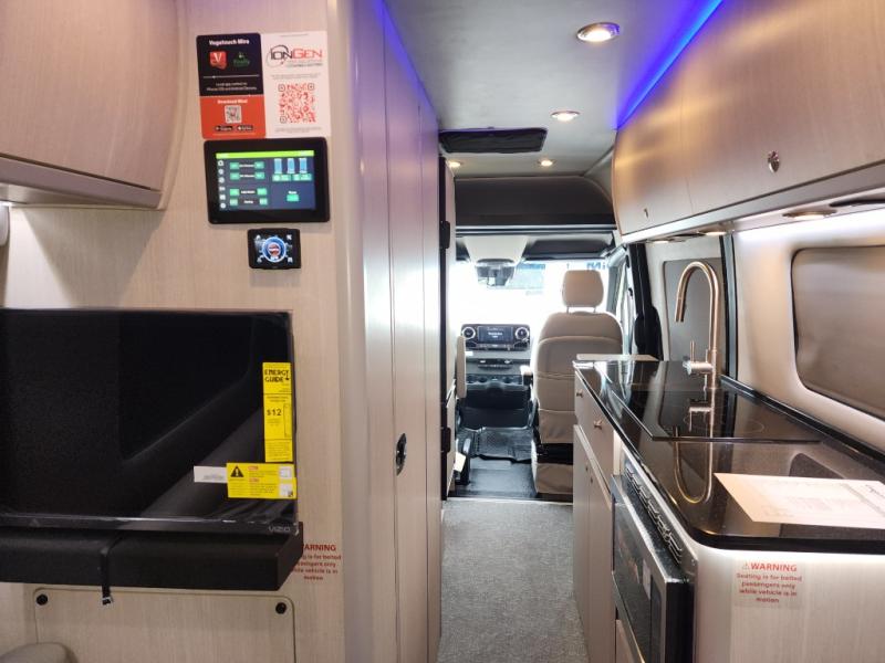 With each Terreno-ion AWD Class B diesel motorhome by Grech RV, the Lithium-ion Power package offers Lithionics lithium batteries and an integrated battery management system that pairs perfectly with the Firefly integrations control system. This all-wheel drive coach has an in-dash navigation system, rear parking sensors, air suspension, and a 5,000 lb. trailer tow package. Other standout features include the custom fiberglass body kit, the RV window package, plus the diesel powered Timberline system with a tankless hot water heater, furnace and heating. There are also Ultraleather rear seating surfaces, LED ambient accent lighting, vinyl woven flooring, and the list of luxury goes on!