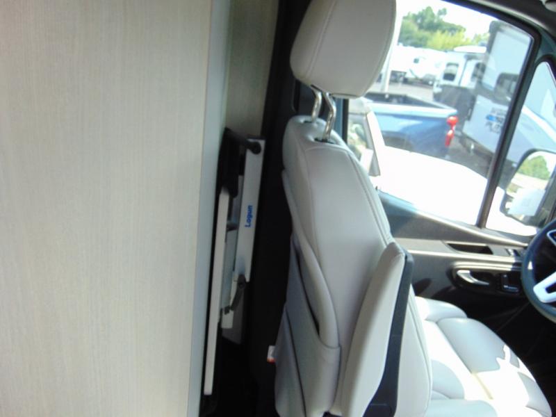 You will be able to travel a little harder with this all wheel drive Turismo-ion Class B diesel motorhome! This coach elevates every experience with its Ultraleather rear seating surfaces, Swiss Chrono hardwood cabinets, soft-touch walls and headliner, and LED ambient accent lighting. You'll have a Lagun table that you can use when you need to sit down to answer some emails or eat dinner, and you can even prepare the dinner completely within your coach's kitchen because it comes with a two-burner propane cooktop, a combination microwave/convection/air fryer, and a refrigerator/freezer. There is also a faucet with pull-out sprayer, and quartz countertops with a farmhouse-style sink. You'll also be able to have great mornings since you have your own wet bathroom right there within the coach. The bathroom even includes a ceramic toilet with foot flush, a retractable clothes line, a handheld showerhead, and a molded sink with vanity mirror.