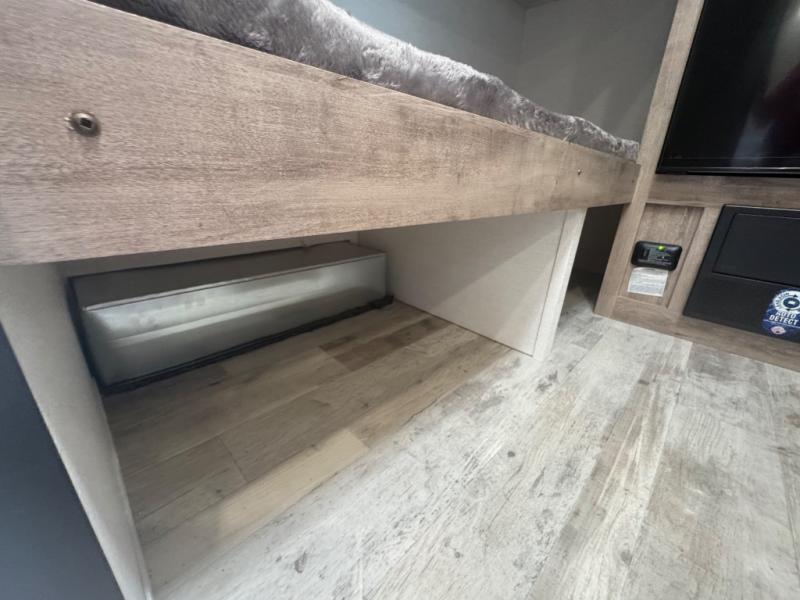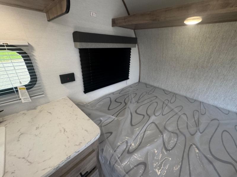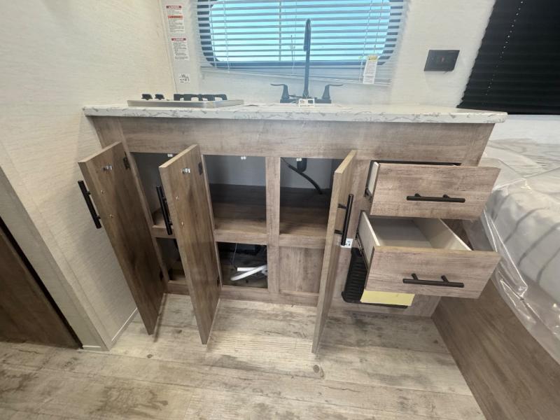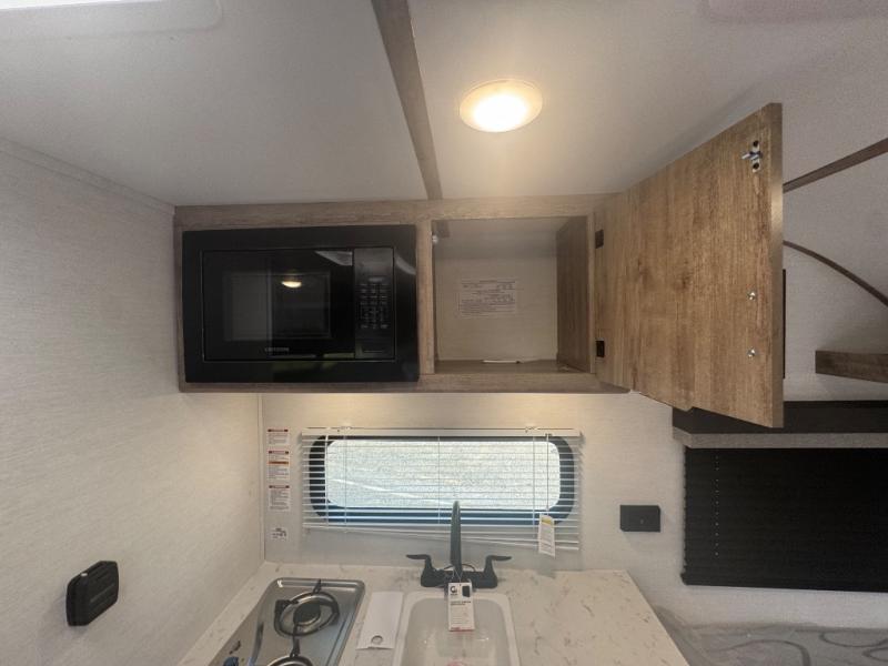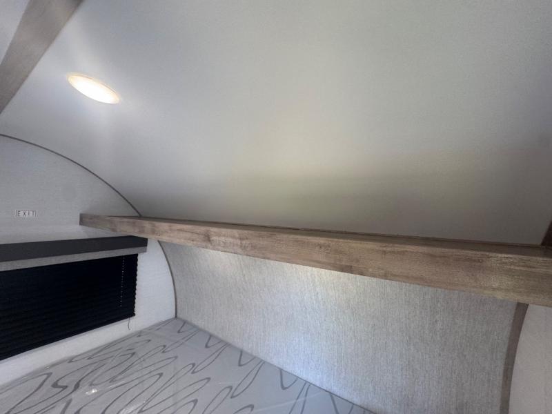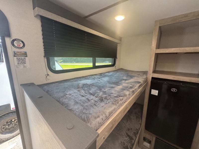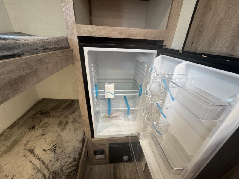 This travel trailer is ideal for families seeking adventure and relaxation! The incredible microwave and refrigerator simplify meal planning, while the two-burner cooktop lets you cook up delicious meals for the whole family. The bunk beds are a hit with kids, providing a fun and cozy sleeping space, while the comfortable bed is perfect for parents to unwind. Ample storage space is available, including flip-up storage and overhead shelves, keeping your belongings organized and within reach.