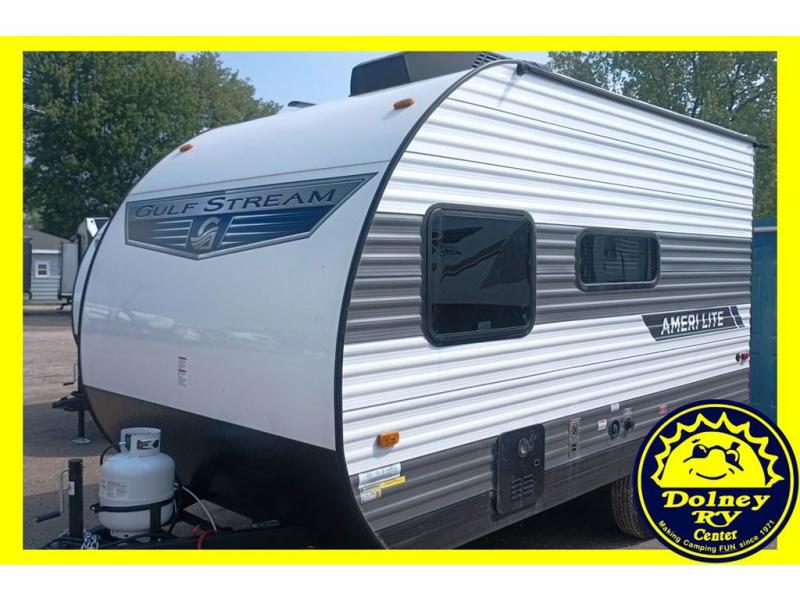 If you're looking for an affordable, lightweight travel trailer, you've found it in the Ameri-Lite Super Lite by Gulf Stream. These models may be lighter in weight, but they don't skimp out on comfortable features. Each unit includes high-performance vinyl flooring throughout, a white kitchen sink, craft-made cabinetry with designer pulls, plus fabric-wrapped box valances to make you feel right at home. You'll enjoy the 6' 8" interior height, wood ceiling trim, multiple USB ports, and more features included within the Camping Package. These models also include a tankless water heater, a central control panel to control your unit's functions, plus plenty of safety features you are sure to appreciate for your family. You can't go wrong with an Ameri-Lite Super Lite travel trailer. Choose your favorite floorplan today!