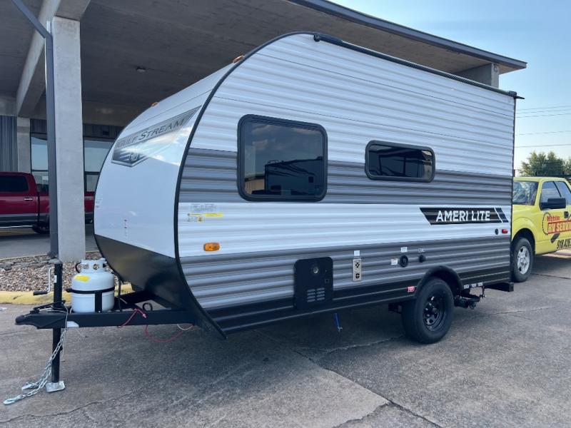 If you're looking for an affordable, lightweight travel trailer, you've found it in the Ameri-Lite Super Lite by Gulf Stream. These models may be lighter in weight, but they don't skimp out on comfortable features. Each unit includes high-performance vinyl flooring throughout, a white kitchen sink, craft-made cabinetry with designer pulls, plus fabric-wrapped box valances to make you feel right at home. You'll enjoy the 6' 8" interior height, wood ceiling trim, multiple USB ports, and more features included within the Camping Package. These models also include a tankless water heater, a central control panel to control your unit's functions, plus plenty of safety features you are sure to appreciate for your family. You can't go wrong with an Ameri-Lite Super Lite travel trailer. Choose your favorite floorplan today!