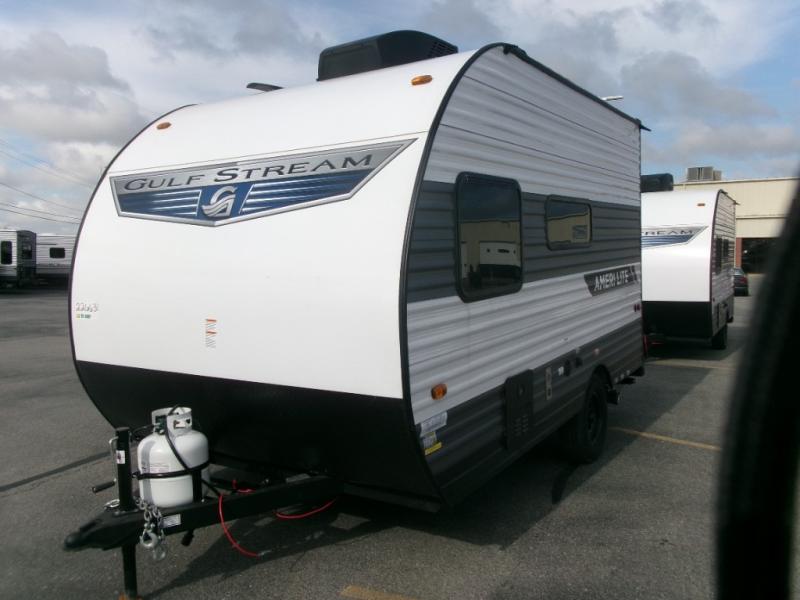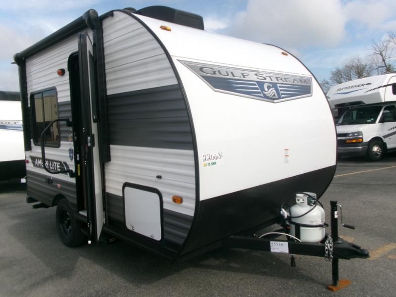If you're looking for an affordable, lightweight travel trailer, you've found it in the Ameri-Lite Super Lite by Gulf Stream. These models may be lighter in weight, but they don't skimp out on comfortable features. Each unit includes high-performance vinyl flooring throughout, a white kitchen sink, craft-made cabinetry with designer pulls, plus fabric-wrapped box valances to make you feel right at home. You'll enjoy the 6' 8" interior height, wood ceiling trim, multiple USB ports, and more features included within the Camping Package. These models also include a tankless water heater, a central control panel to control your unit's functions, plus plenty of safety features you are sure to appreciate for your family. You can't go wrong with an Ameri-Lite Super Lite travel trailer. Choose your favorite floorplan today!