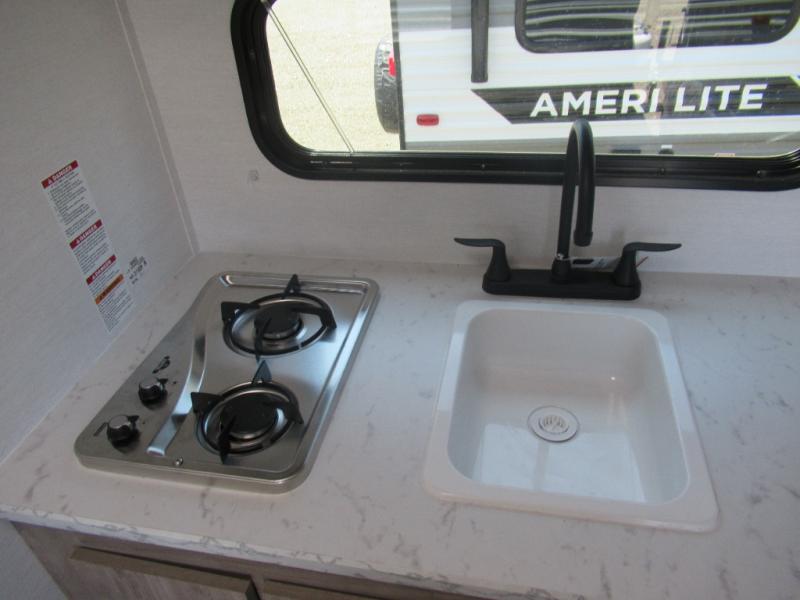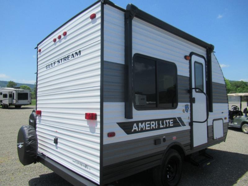 If you're looking for an affordable, lightweight travel trailer, you've found it in the Ameri-Lite Super Lite by Gulf Stream. These models may be lighter in weight, but they don't skimp out on comfortable features. Each unit includes high-performance vinyl flooring throughout, a white kitchen sink, craft-made cabinetry with designer pulls, plus fabric-wrapped box valances to make you feel right at home. You'll enjoy the 6' 8" interior height, wood ceiling trim, multiple USB ports, and more features included within the Camping Package. These models also include a tankless water heater, a central control panel to control your unit's functions, plus plenty of safety features you are sure to appreciate for your family. You can't go wrong with an Ameri-Lite Super Lite travel trailer. Choose your favorite floorplan today!