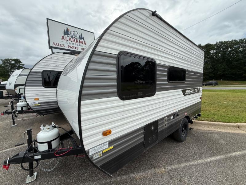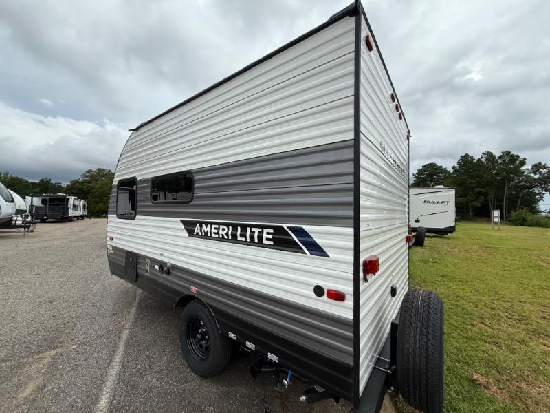 If you're looking for an affordable, lightweight travel trailer, you've found it in the Ameri-Lite Super Lite by Gulf Stream. These models may be lighter in weight, but they don't skimp out on comfortable features. Each unit includes high-performance vinyl flooring throughout, a white kitchen sink, craft-made cabinetry with designer pulls, plus fabric-wrapped box valances to make you feel right at home. You'll enjoy the 6' 8" interior height, wood ceiling trim, multiple USB ports, and more features included within the Camping Package. These models also include a tankless water heater, a central control panel to control your unit's functions, plus plenty of safety features you are sure to appreciate for your family. You can't go wrong with an Ameri-Lite Super Lite travel trailer. Choose your favorite floorplan today!