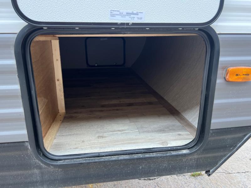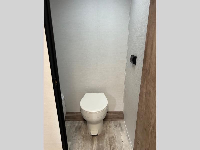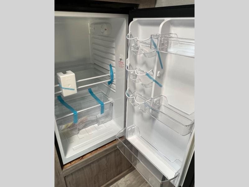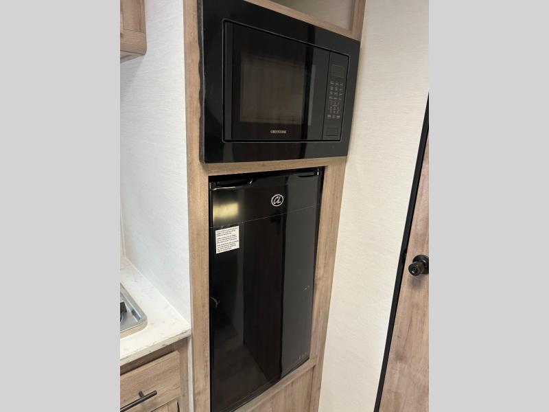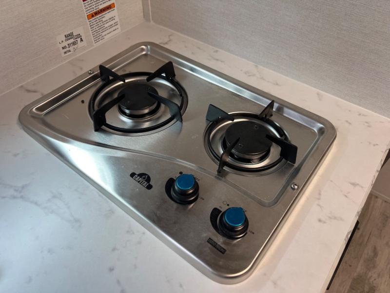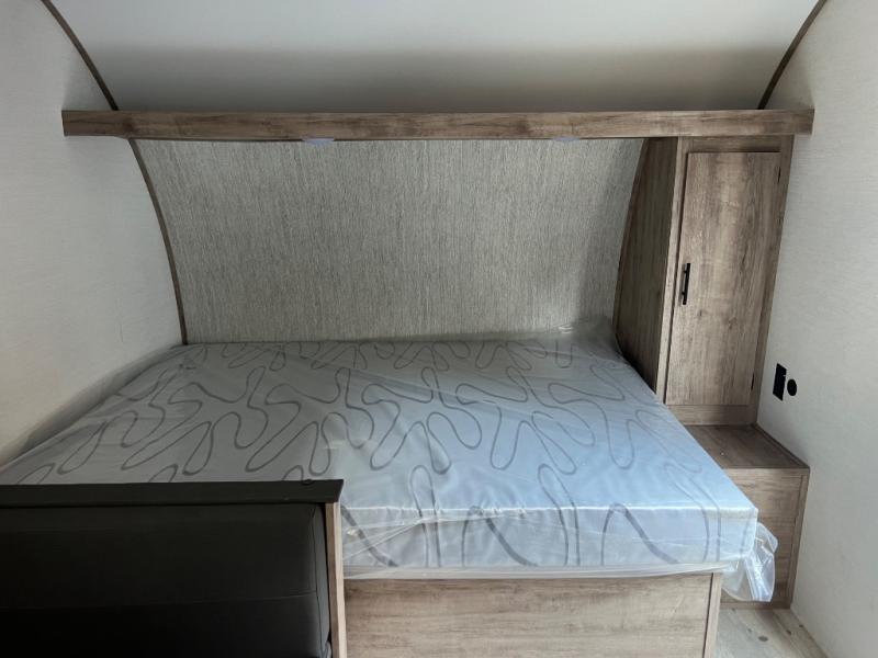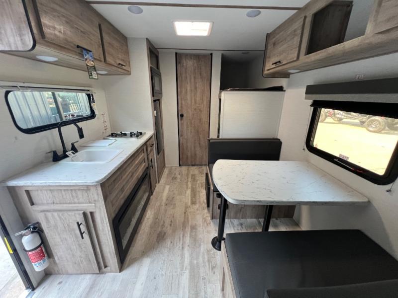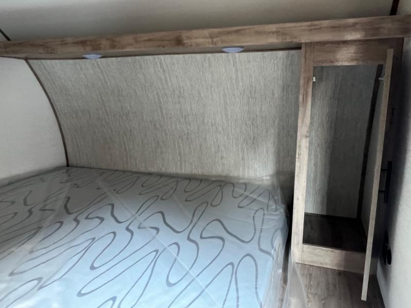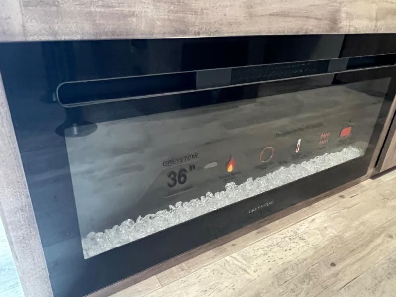 It's easier than ever to enjoy the camping lifestyle with this lightweight travel trailer. There are bunk beds for your guests or little ones, a front bed for you, plus a booth dinette that can double as dining and sleeping space. The private toilet and shower will allow you to stay clean throughout each trip, and since the sink is at the kitchen counter, someone can brush their teeth while the other showers before bed. You will love the fireplace included in this model for a more at-home feel, or you just might find yourselves outdoors under the power awning most of the day!