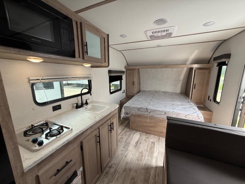 If you're looking for an affordable, lightweight travel trailer, you've found it in the Ameri-Lite Super Lite by Gulf Stream. These models may be lighter in weight, but they don't skimp out on comfortable features. Each unit includes high-performance vinyl flooring throughout, a white kitchen sink, craft-made cabinetry with designer pulls, plus fabric-wrapped box valances to make you feel right at home. You'll enjoy the 6' 8" interior height, wood ceiling trim, multiple USB ports, and more features included within the Camping Package. These models also include a tankless water heater, a central control panel to control your unit's functions, plus plenty of safety features you are sure to appreciate for your family. You can't go wrong with an Ameri-Lite Super Lite travel trailer. Choose your favorite floorplan today!