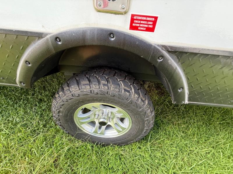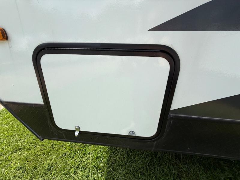 Traveling and camping across the country with your family has never been easier than in this Ameri-Lite Super Lite travel trailer. The exterior pass-through storage allows you to tote along all of your adventuring supplies so that nothing needs to be left behind. There are plenty of overhead cabinets throughout for you to keep your items neat and handy. This unit has a full bathroom conveniently placed in the back of the trailer for added privacy, and after a long afternoon exploring nature, this trailer can sleep three people for a quick nap to revive you for the rest of the day's excursions. This model also includes the Rocky Mountain Edition that comes with knobby tires, wheel wells, upgraded wheels, and more!