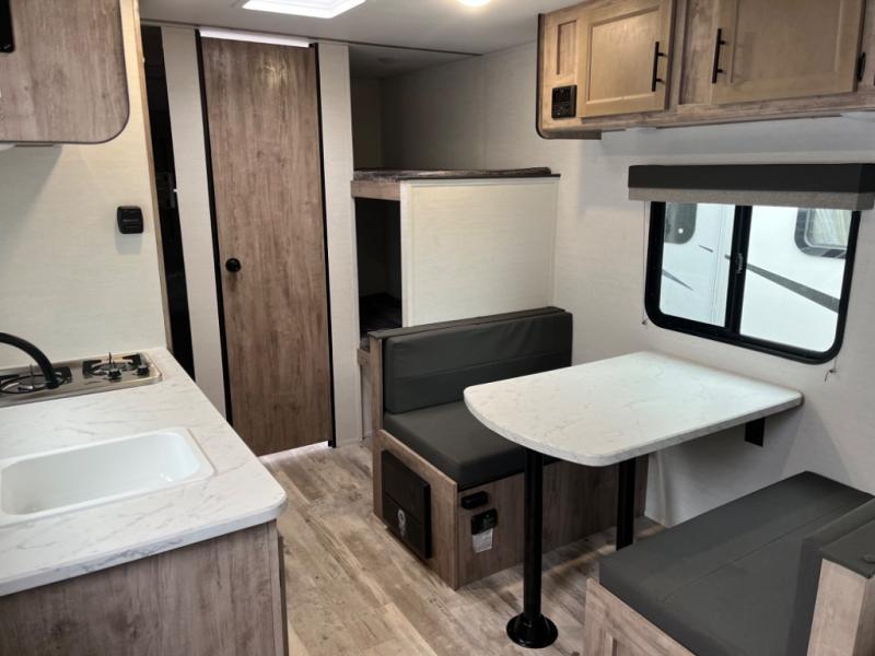 If you're looking for an affordable, lightweight travel trailer, you've found it in the Ameri-Lite Super Lite by Gulf Stream. These models may be lighter in weight, but they don't skimp out on comfortable features. Each unit includes high-performance vinyl flooring throughout, a white kitchen sink, craft-made cabinetry with designer pulls, plus fabric-wrapped box valances to make you feel right at home. You'll enjoy the 6' 8" interior height, wood ceiling trim, multiple USB ports, and more features included within the Camping Package. These models also include a tankless water heater, a central control panel to control your unit's functions, plus plenty of safety features you are sure to appreciate for your family. You can't go wrong with an Ameri-Lite Super Lite travel trailer. Choose your favorite floorplan today!