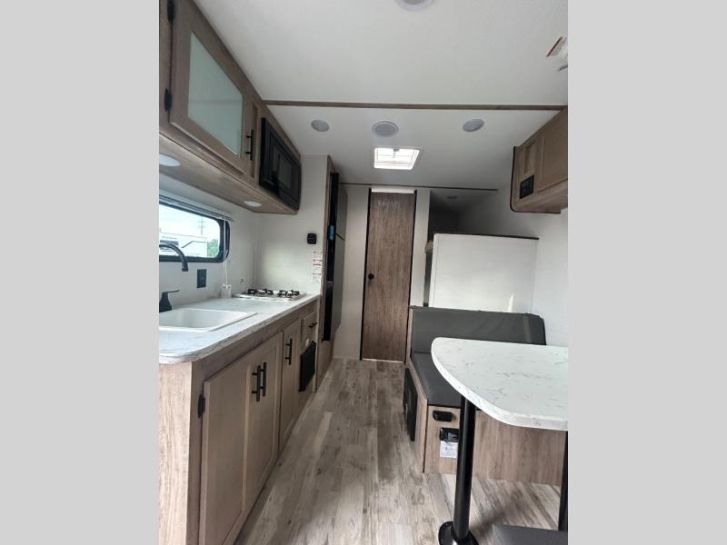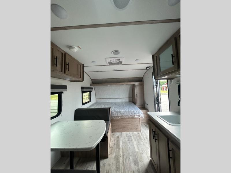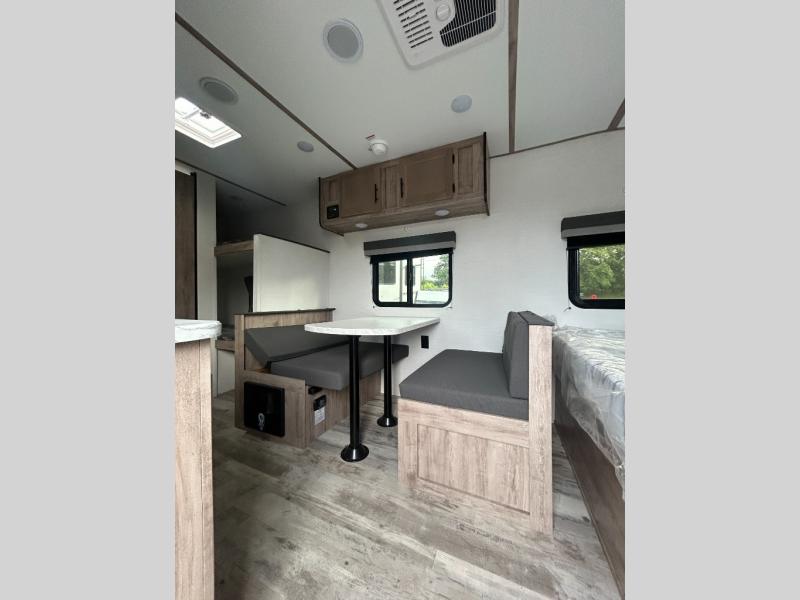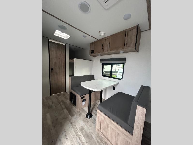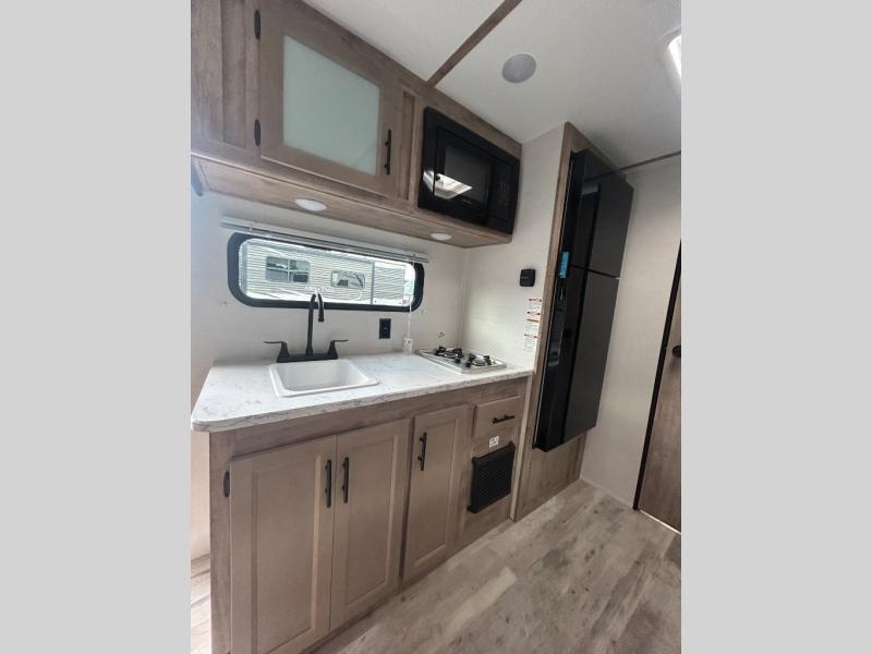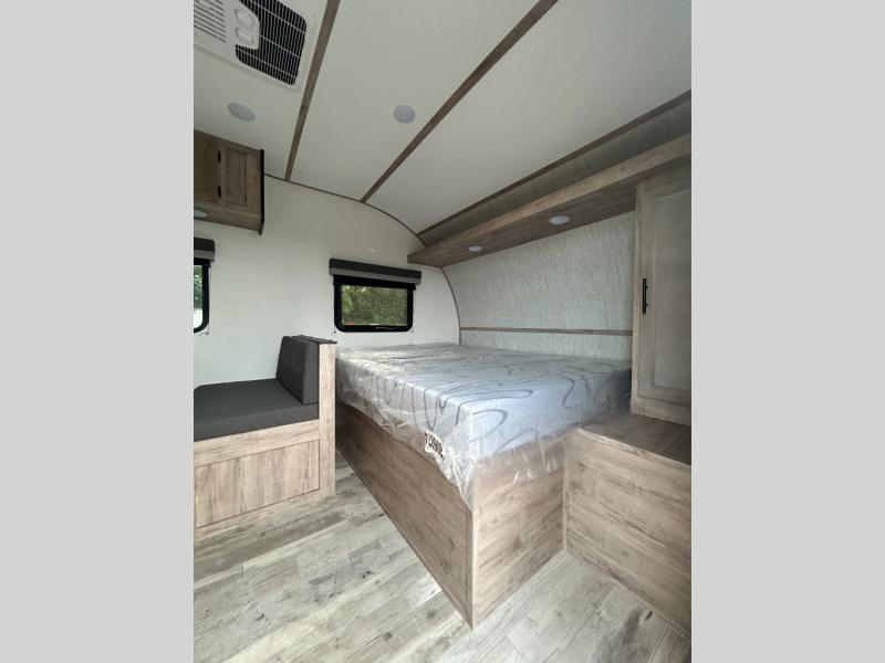 If you're looking for an affordable, lightweight travel trailer, you've found it in the Ameri-Lite Super Lite by Gulf Stream. These models may be lighter in weight, but they don't skimp out on comfortable features. Each unit includes high-performance vinyl flooring throughout, a white kitchen sink, craft-made cabinetry with designer pulls, plus fabric-wrapped box valances to make you feel right at home. You'll enjoy the 6' 8" interior height, wood ceiling trim, multiple USB ports, and more features included within the Camping Package. These models also include a tankless water heater, a central control panel to control your unit's functions, plus plenty of safety features you are sure to appreciate for your family. You can't go wrong with an Ameri-Lite Super Lite travel trailer. Choose your favorite floorplan today!
