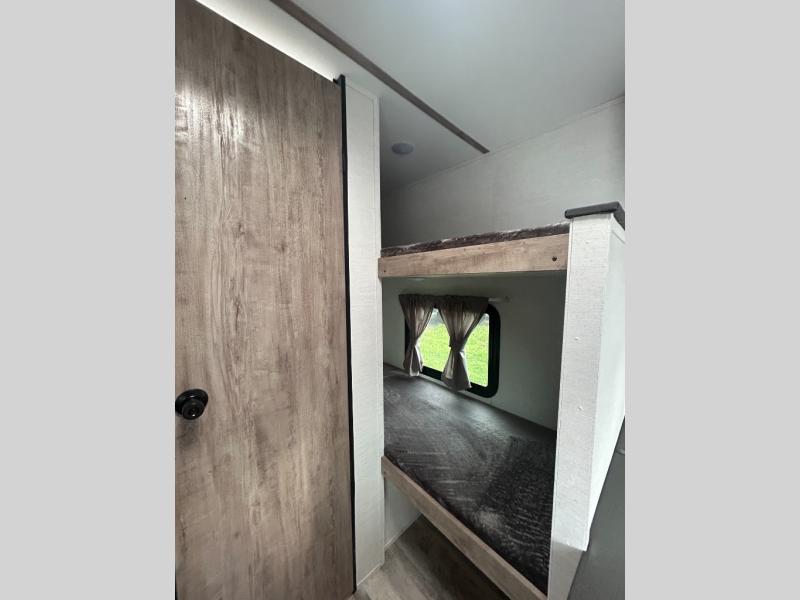 When you own this Ameri-Lite Super Lite travel trailer, you own a trailer that gives you ample storage space at an affordable price. With its compact design, this trailer is easy to tow yet full of living space. The bunk beds, the booth dinette, and the queen-size bed allow this unit to sleep five adults comfortably while still leaving room for things like the private bathroom. The two-burner cooktop and microwave oven allow you to prepare meals each day, and the power awning gives you the ability to enjoy the great outdoors without experiencing the sun's harmful rays. This model also includes the Rocky Mountain Edition that comes with knobby tires, wheel wells, upgraded wheels, and more!