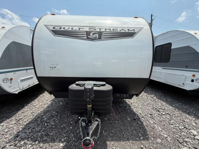 The Ameri-Lite Ultra Lite travel trailers by Gulf Stream are the perfect RV for families wanting to start their camping lifestyle, but not break the bank. These lightweight units are built with a diamond plate lower front, a one-piece synthetic vinyl roof, and a uni-body construction with steel hurricane straps tying the walls to the floor for added durability. The front power hitch jack and four stabilizer jacks will make set-up hassle-free once you arrive at the campground, and you can put out the electric awning to rest in the shade when you're done. Each model includes convenient amenities, like the 13,500 BTU A/C, the tankless water heater, a central control panel, and multiple USB ports for your tablet, phone, and camera! The inside is designed to make you feel at home with radiant LED lighting, designer kitchen backsplash, pleated privacy shades, craft-made cabinetry, plus many more features. Start your RV lifestyle with an affordable, lightweight Ameri-Lite Ultra Lite travel trailer today!