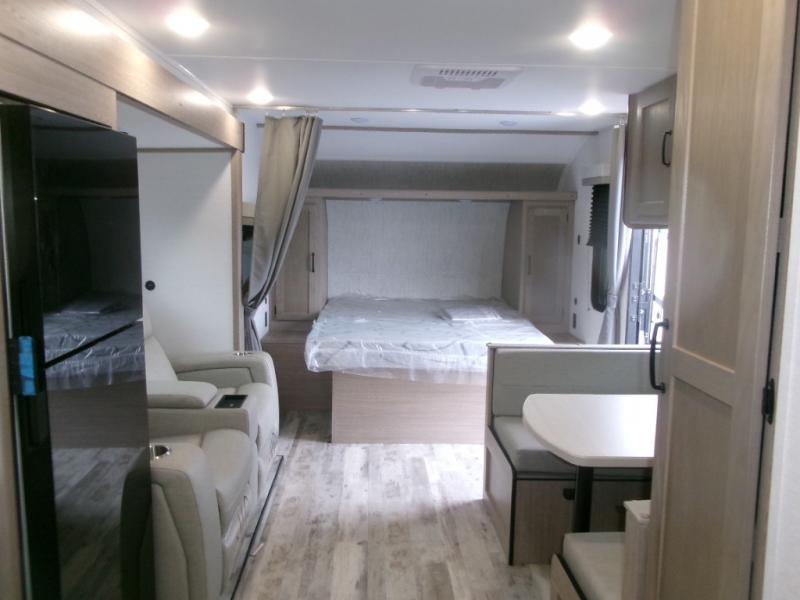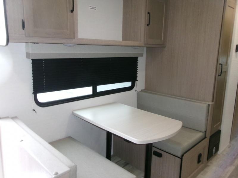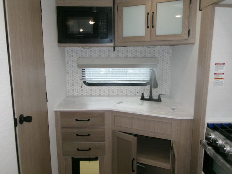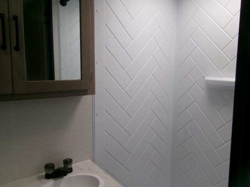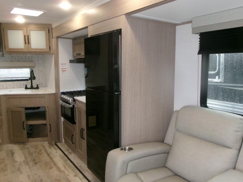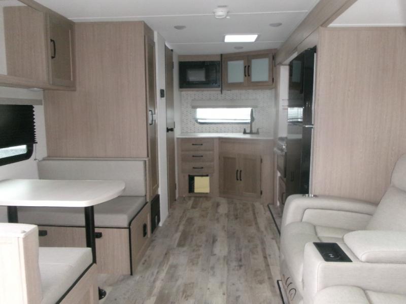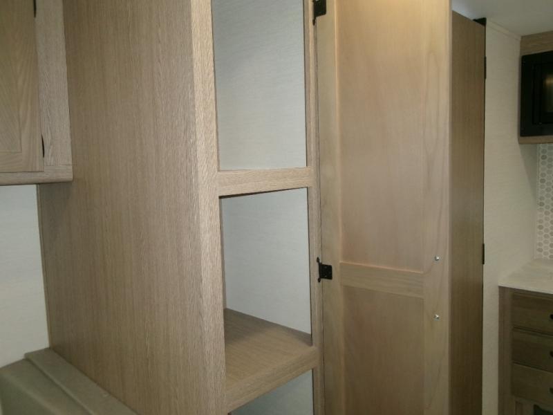 This travel trailer is perfect for you and your partner, thanks to the queen bed, which is ideal for sleeping and resting peacefully, beside it you will find a shirt closet and wardrobe to store your belongings. You can rest a bit on the theater seating or also have a chit-chat with your partner. Conveniently cook delicious food thanks to the kitchen which includes a refrigerator, three cooktop burners, microwave, and sink. After the food is done, you can comfortably have lunch at the 38' dinette while watching the TV. This unit is also fitted with a lot of space to store different things like pass-thru storage, overhead cabinets, pantry, and linen. Finally, take a relaxing bath in the incredible full bathroom with a skylight above the shower.