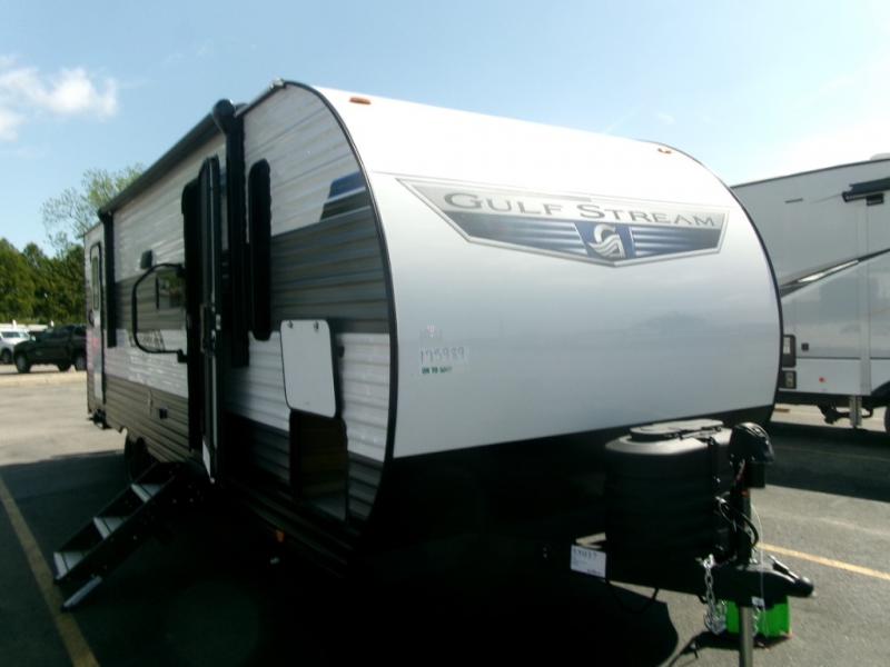 The Ameri-Lite Ultra Lite travel trailers by Gulf Stream are the perfect RV for families wanting to start their camping lifestyle, but not break the bank. These lightweight units are built with a diamond plate lower front, a one-piece synthetic vinyl roof, and a uni-body construction with steel hurricane straps tying the walls to the floor for added durability. The front power hitch jack and four stabilizer jacks will make set-up hassle-free once you arrive at the campground, and you can put out the electric awning to rest in the shade when you're done. Each model includes convenient amenities, like the 13,500 BTU A/C, the tankless water heater, a central control panel, and multiple USB ports for your tablet, phone, and camera! The inside is designed to make you feel at home with radiant LED lighting, designer kitchen backsplash, pleated privacy shades, craft-made cabinetry, plus many more features. Start your RV lifestyle with an affordable, lightweight Ameri-Lite Ultra Lite travel trailer today!