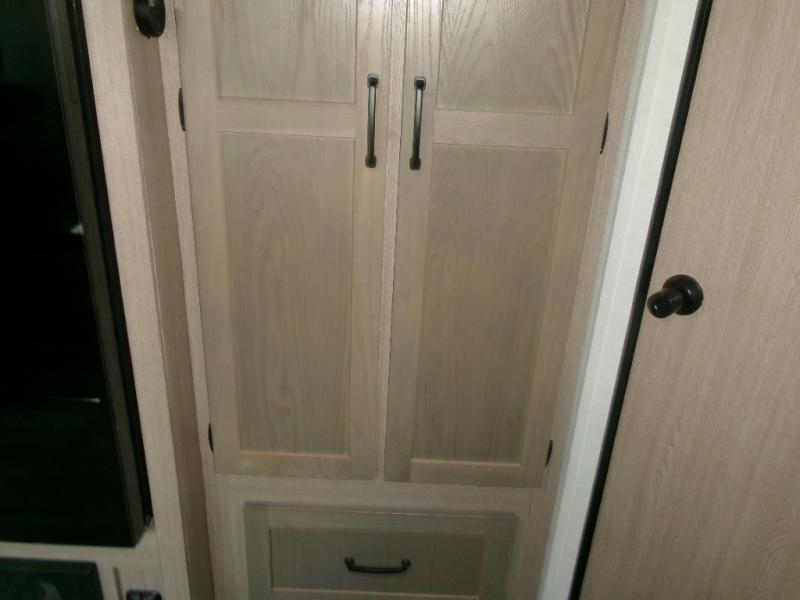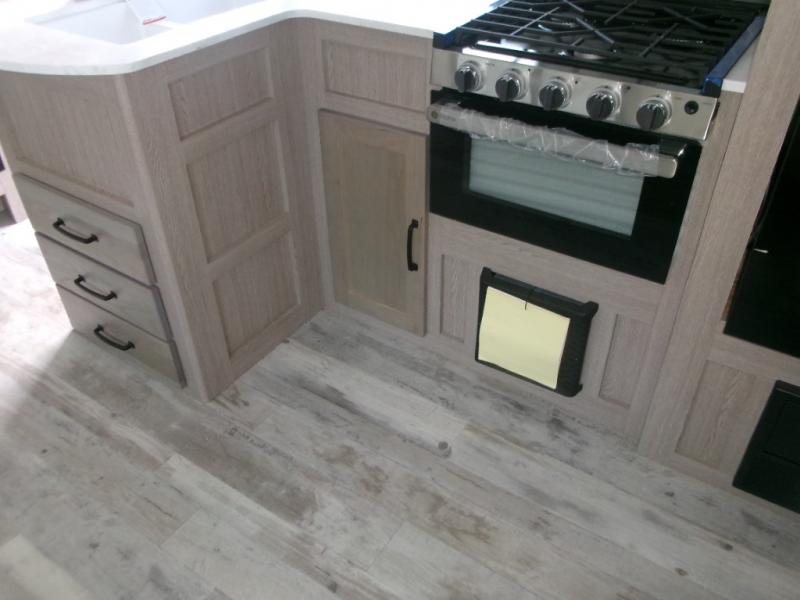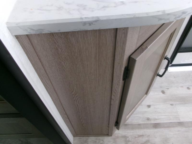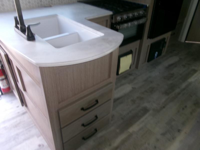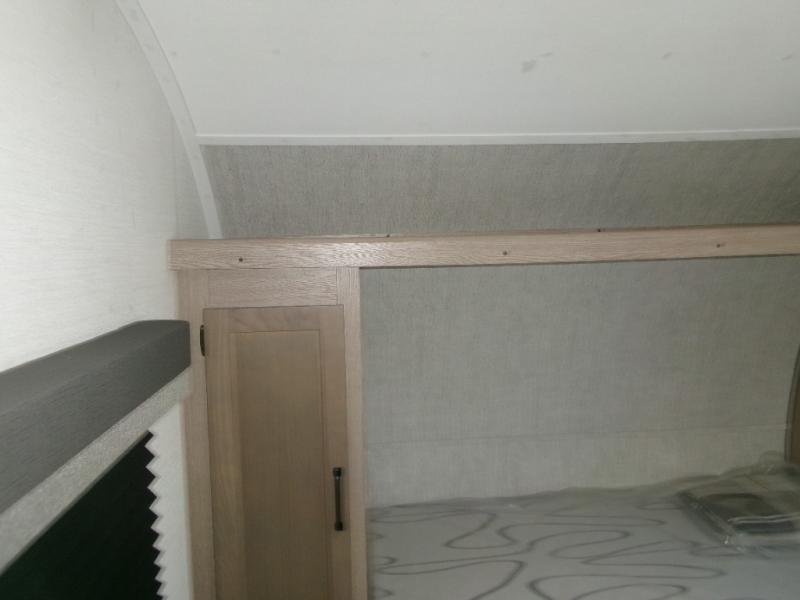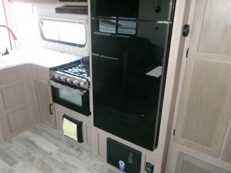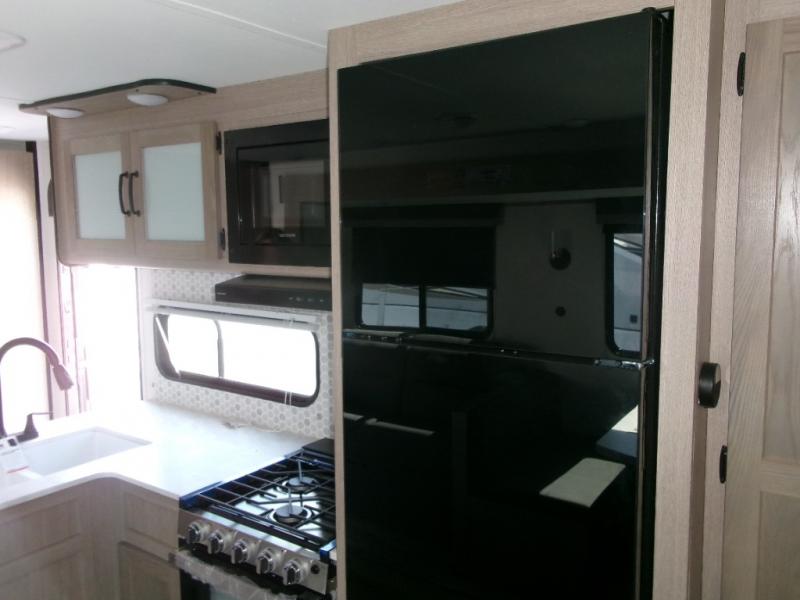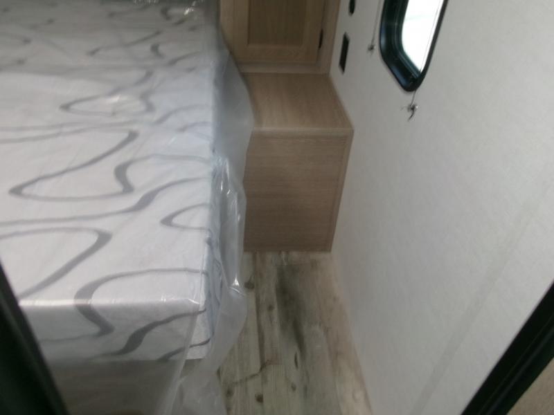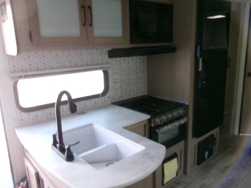 A trip to the lake or your favorite state park just got better in this comfortable travel trailer. Whether you're relaxing on the sofa or booth dinette, cooking in the spacious kitchen, or sitting outside under the electric awning with LED lights, you will enjoy every minute you camp. You and your spouse will have a private bedroom up front with a queen bed and dual wardrobes, and there are double-size bunks for the kids or your friends!
