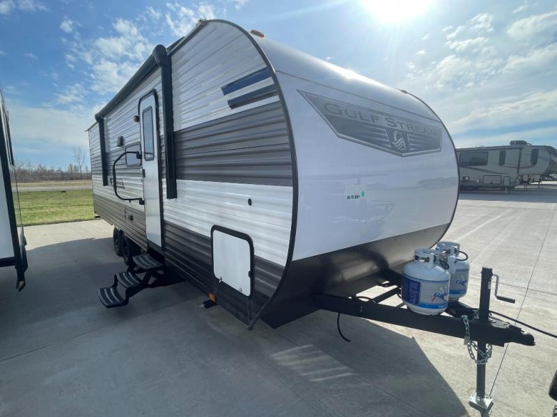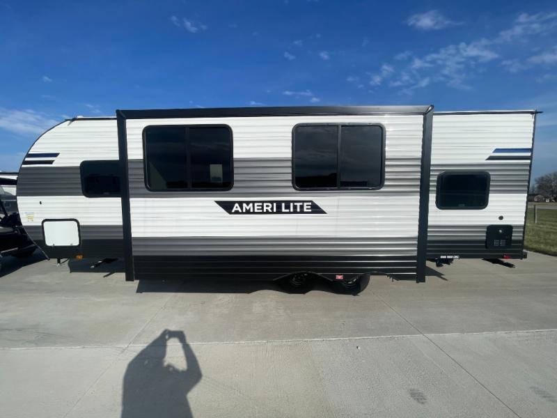 The Ameri-Lite Ultra Lite travel trailers by Gulf Stream are the perfect RV for families wanting to start their camping lifestyle, but not break the bank. These lightweight units are built with a diamond plate lower front, a one-piece synthetic vinyl roof, and a uni-body construction with steel hurricane straps tying the walls to the floor for added durability. The front power hitch jack and four stabilizer jacks will make set-up hassle-free once you arrive at the campground, and you can put out the electric awning to rest in the shade when you're done. Each model includes convenient amenities, like the 13,500 BTU A/C, the tankless water heater, a central control panel, and multiple USB ports for your tablet, phone, and camera! The inside is designed to make you feel at home with radiant LED lighting, designer kitchen backsplash, pleated privacy shades, craft-made cabinetry, plus many more features. Start your RV lifestyle with an affordable, lightweight Ameri-Lite Ultra Lite travel trailer today!