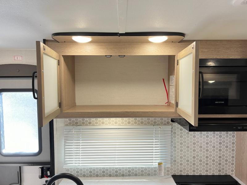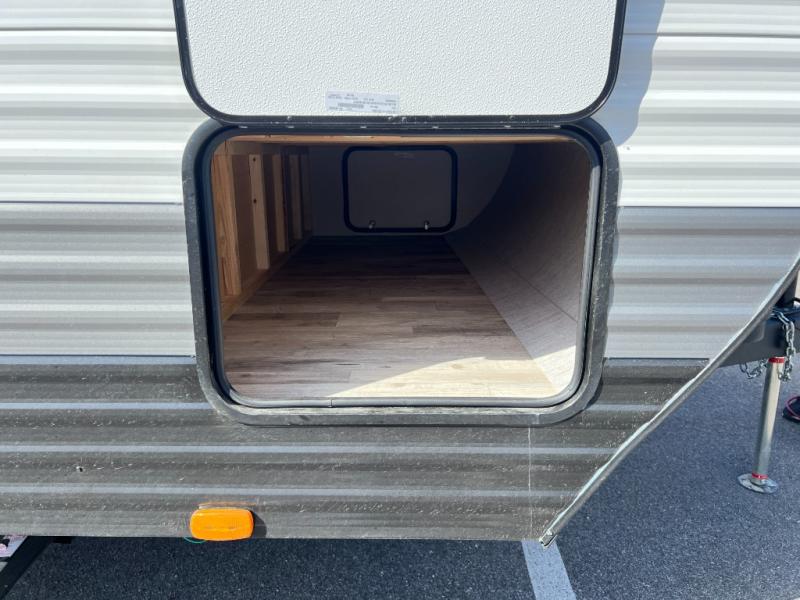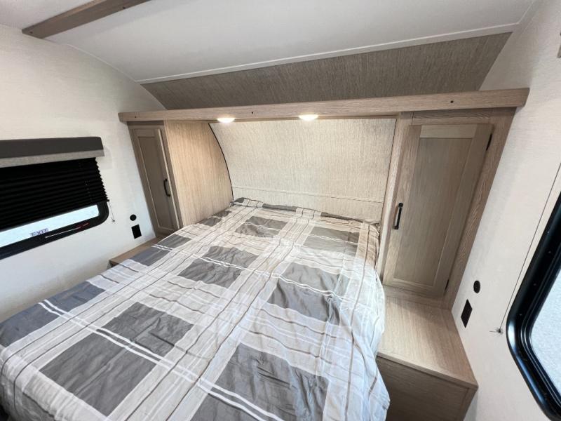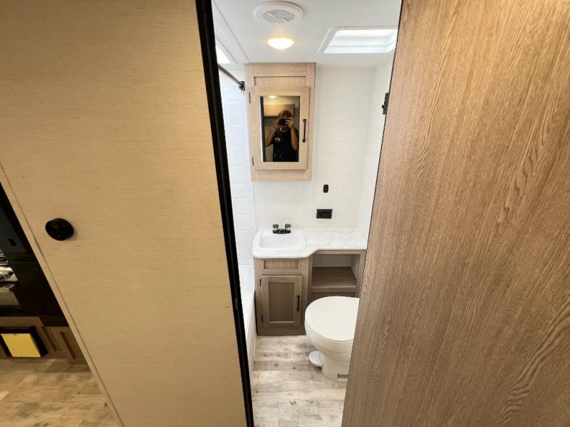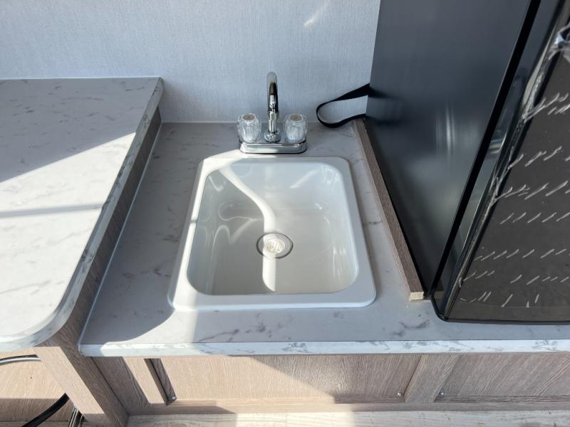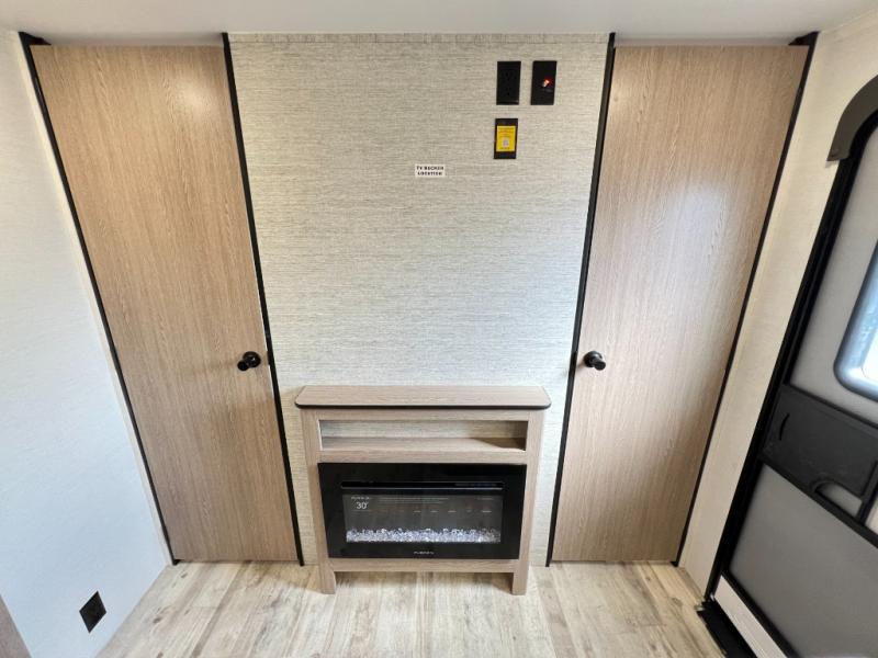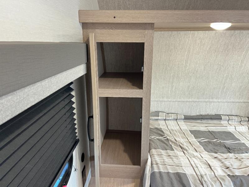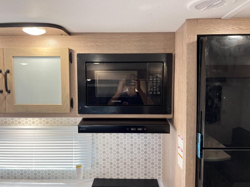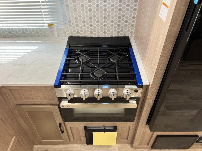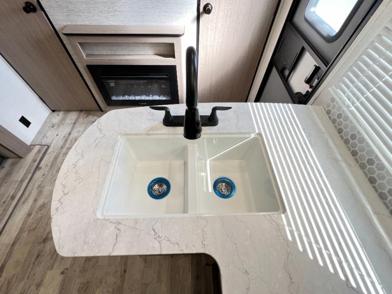 A private bunkhouse for your guests or the kids, and a private bedroom up front make this the perfect travel trailer for camping adventures. The large slide out includes the booth dinette and sofa, which will be great to dine at and relax, and the full bath is easily accessible for everyone. The kitchen includes everything you need to prepare meals each day, including a three burner cooktop and a 10.7 cu. ft. Everchill refrigerator/freezer for perishables. You can also choose to add the optional outside kitchen if you are one that loves to spend a lot of time outdoors!