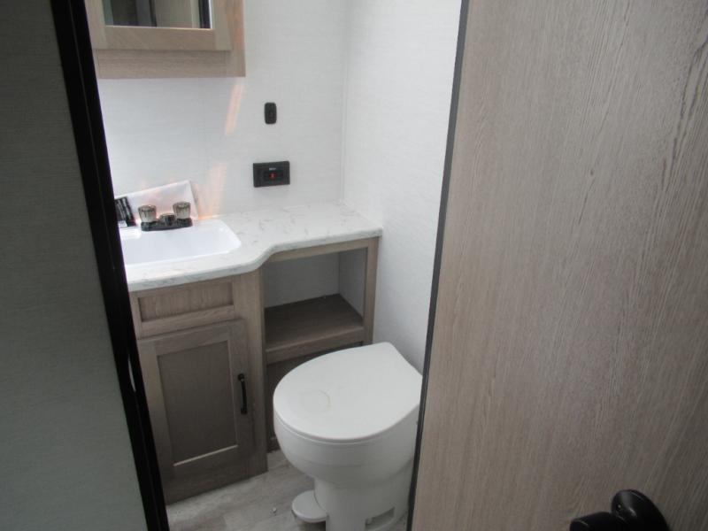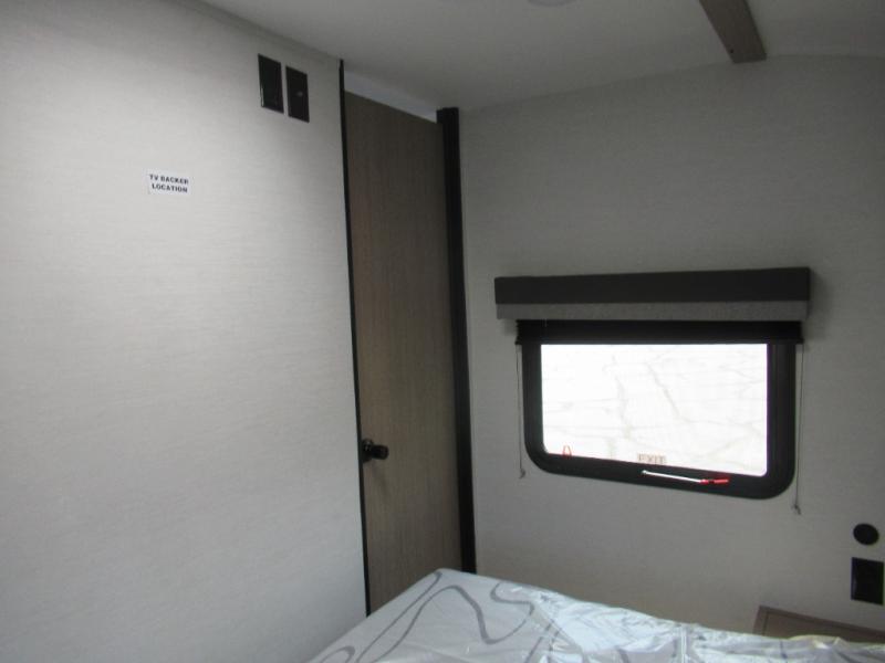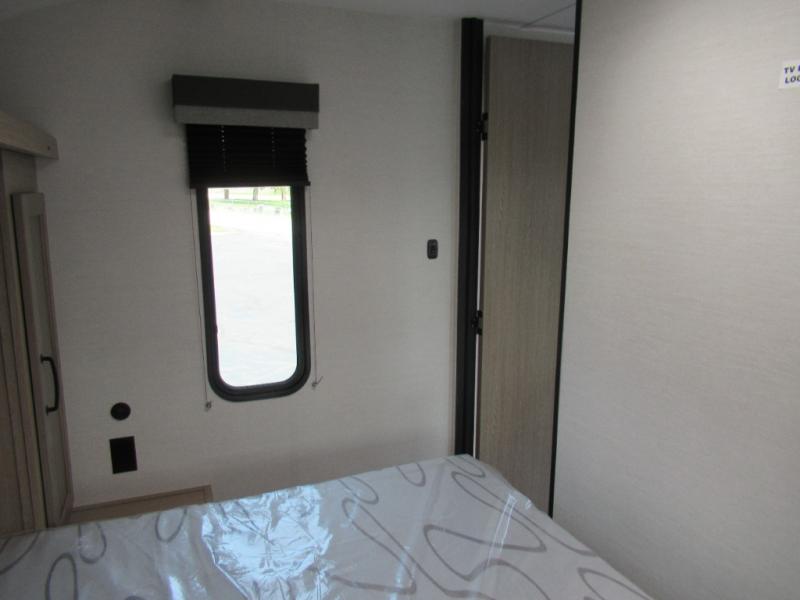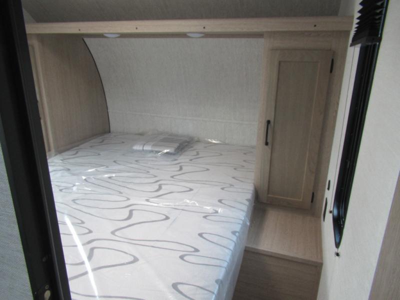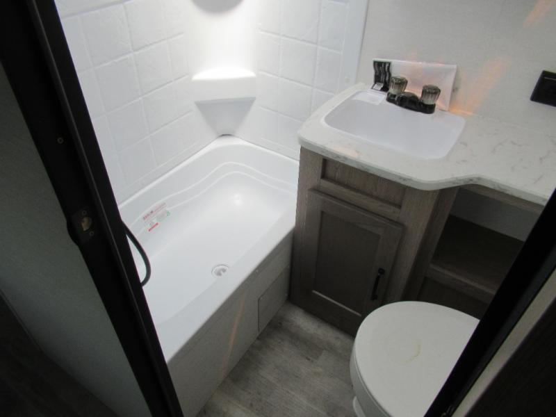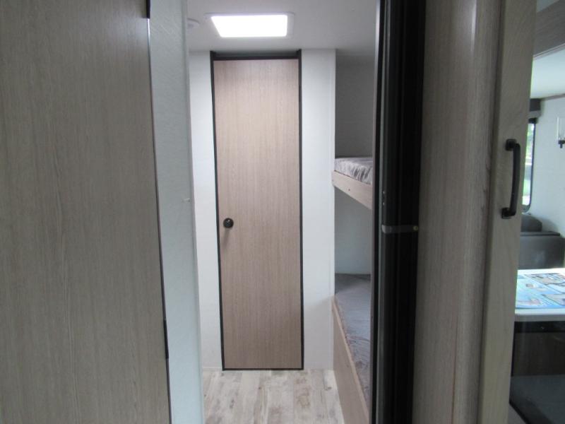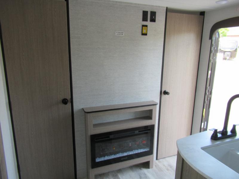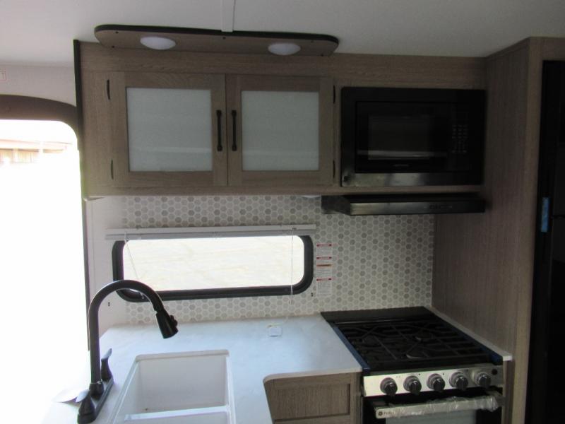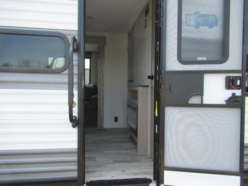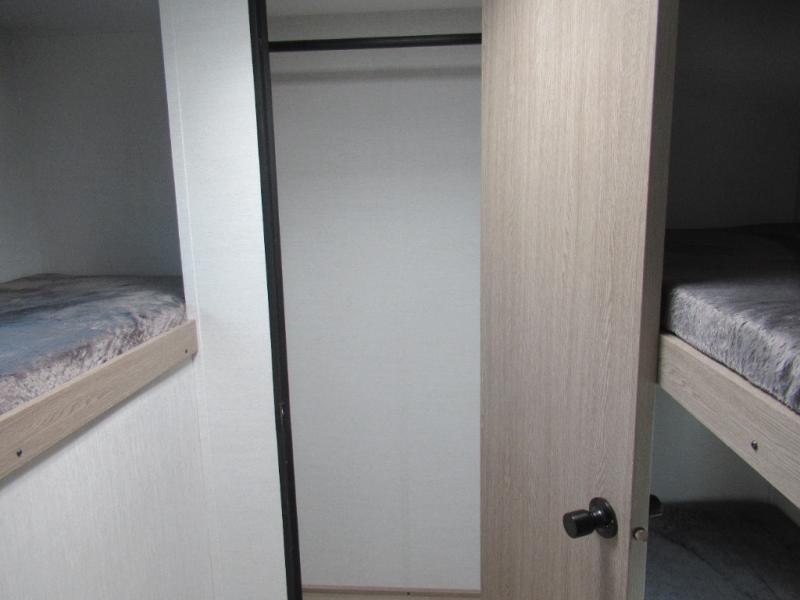 A private bunkhouse for your guests or the kids, and a private bedroom up front make this the perfect travel trailer for camping adventures. The large slide out includes the booth dinette and sofa, which will be great to dine at and relax, and the full bath is easily accessible for everyone. The kitchen includes everything you need to prepare meals each day, including a three burner cooktop and a 10.7 cu. ft. Everchill refrigerator/freezer for perishables. You can also choose to add the optional outside kitchen if you are one that loves to spend a lot of time outdoors!