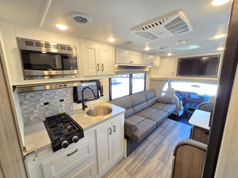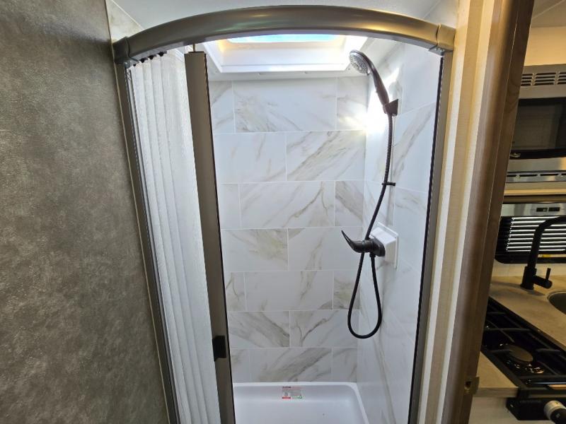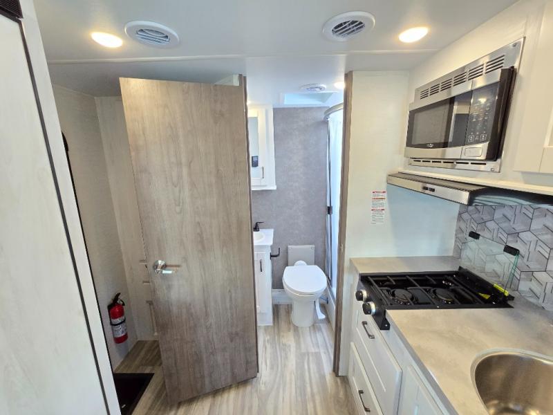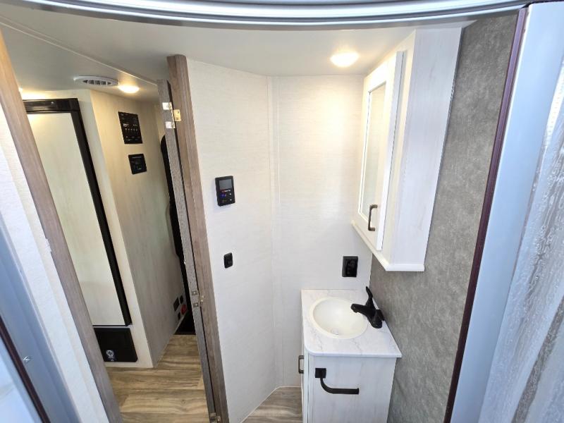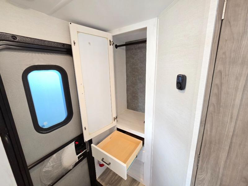 Whether you enjoy tailgating at events or games, traveling to see friends, or meeting a group at a local campground, this coach offers comfort for you to enjoy everything from relaxing, sleeping, eating and staying clean! The 2-way driver and passenger seats are comfortable just like the two Soft Touch jackknife sofas that offer seating during the daytime and sleeping space at night. The cook will have full amenities to make meals, plus a refrigerator to store leftovers. You will find the full bathroom is super convenient while on the road or at your destination, and the wardrobe is just outside the door to keep your clothes wrinkle-free. And outside, the electric awning gives you an outdoor living area protected from the elements, just add your camping chairs.