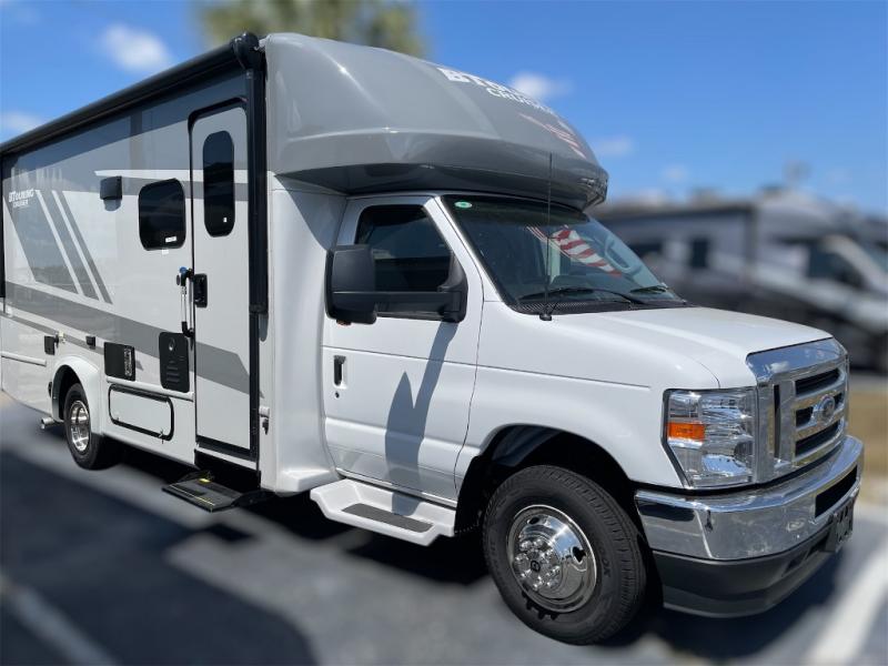 With any Gulf Stream RV BT Cruiser Class B+ gas motorhome, you will appreciate the rugged, reliable, fuel efficient Ford E-350 or E-450 chassis depending on the coach you choose, and the ease of maneuvering the motorhome on two-lane roads, city streets and into tight parking spaces! Some key features include the smooth fiberglass laminated sidewalls, and fiberglass front and rear caps, as well as the kitchen appliances and the soft pleated privacy shades. Some of the included features within the BT Cruiser Bonus Package are a 4.0 kW Onan generator to keep things running, fiberglass running boards for easy entry and exit, the IRD dual battery charging system, upgraded LED interior and exterior lighting, and vinyl flooring for easy care to mention a few. Make your selection today, and enjoy the drive as much as camping!
