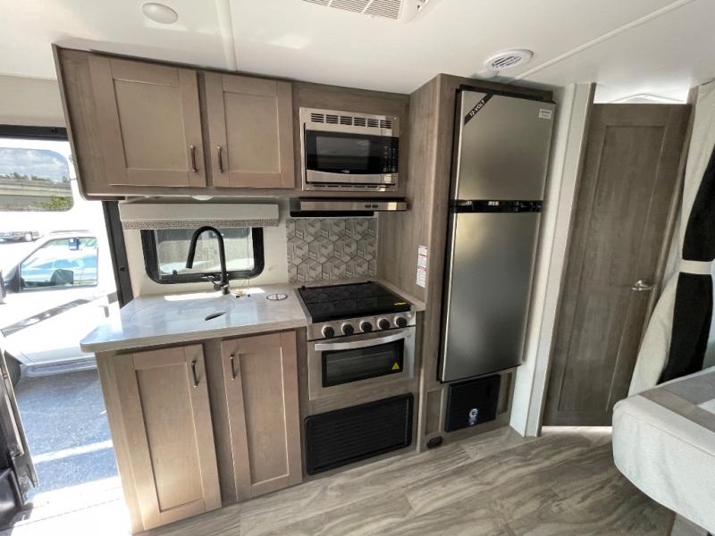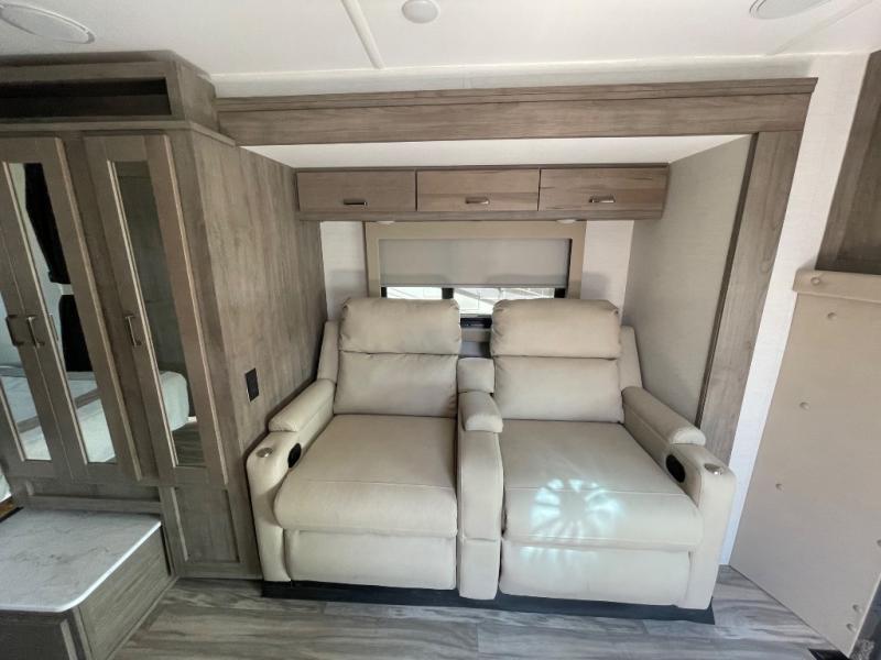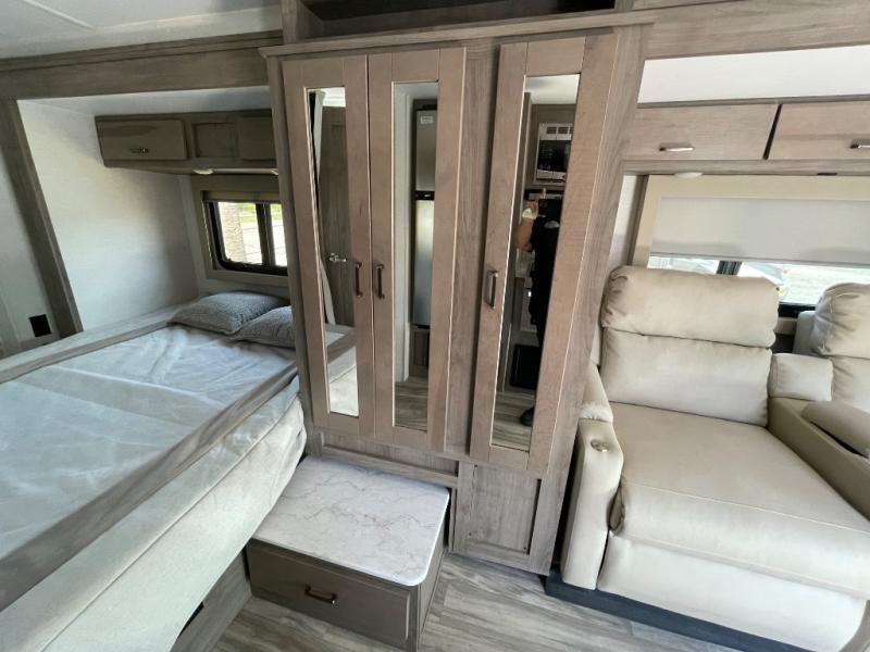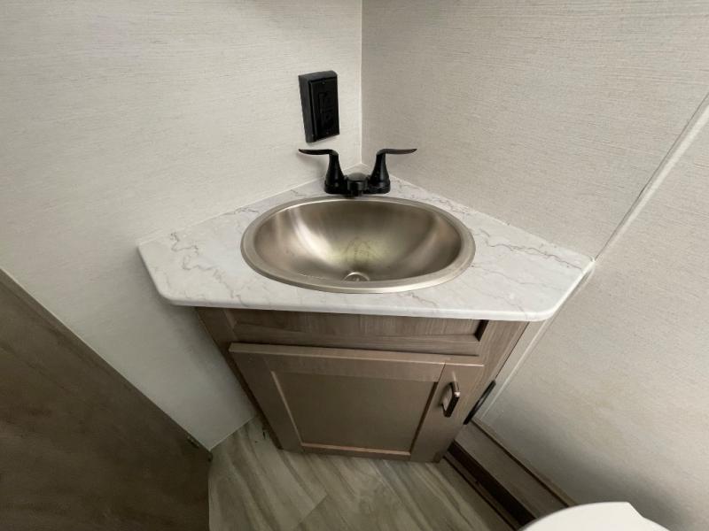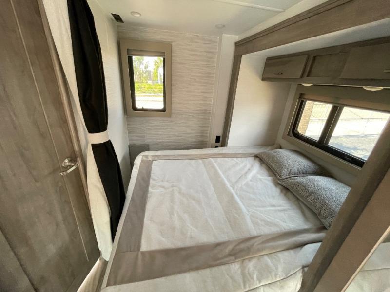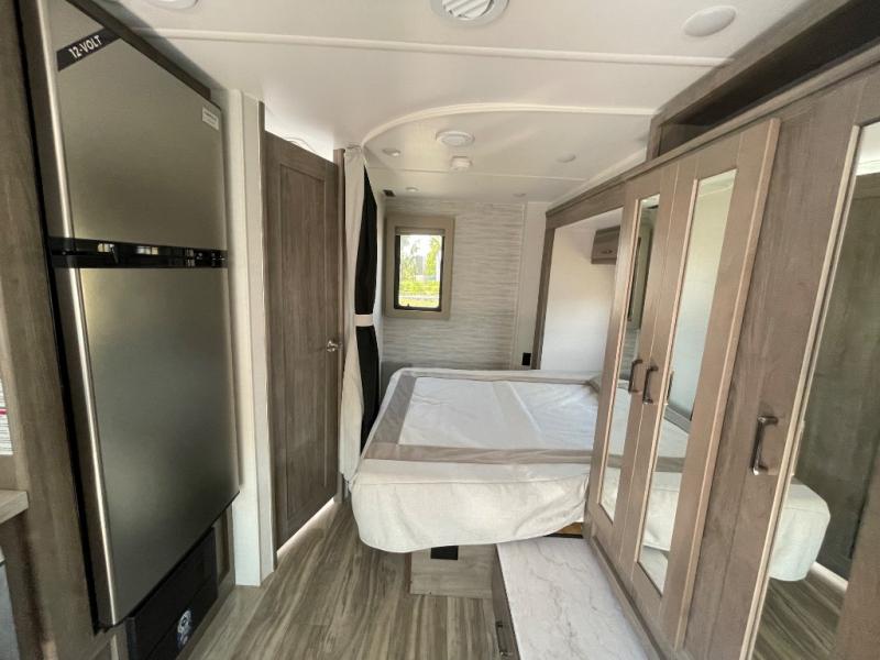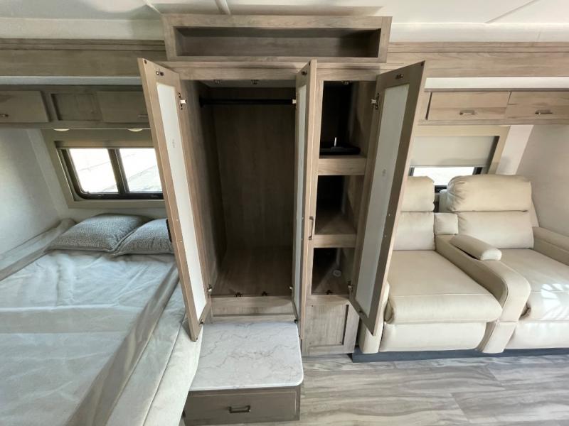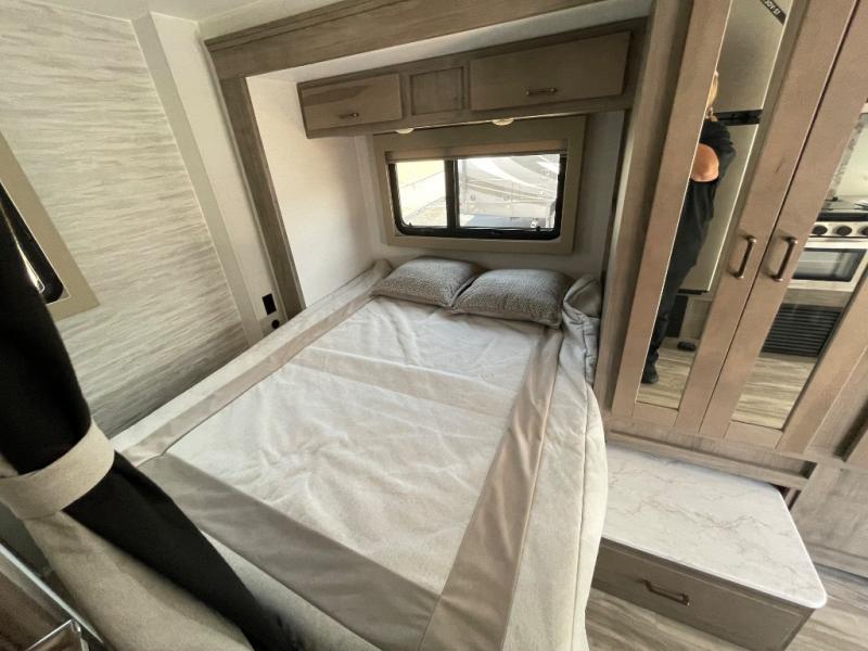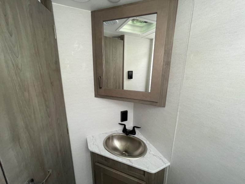 Get ready to see the summer sunshine, the fall colors, and/or the snow on the mountains when you travel in this easy to drive coach! The full-wall slide will impress you with all the floor space from front to back. You can sleep like royalty on the RV queen bed, store your clothes in the wardrobe and food in the pantry, and the booth dinette gives you a place to dine inside. The kitchen offers full amenities to make warm meals and keep leftovers cold in the refrigerator. And you can stay clean with the full bathroom in the rear corner. And don't forget about the electric awning outside, giving you an outdoor living area.
