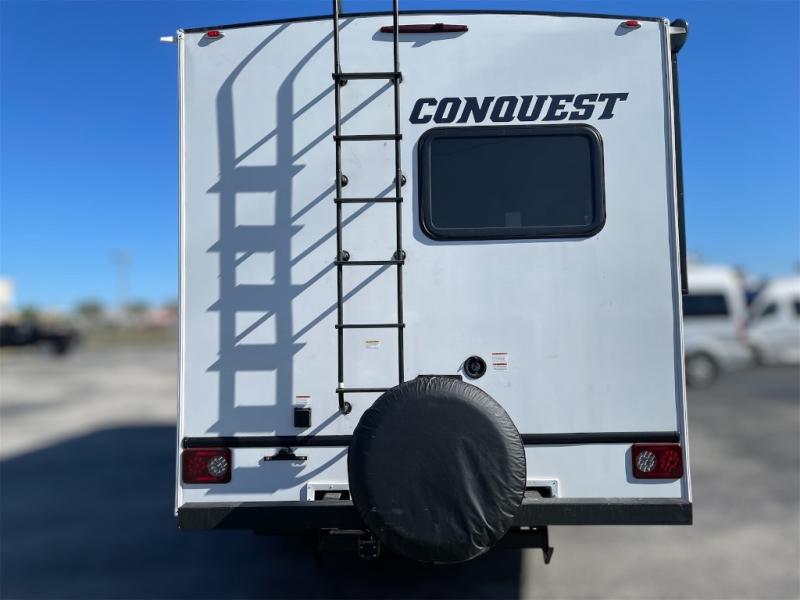 Each one of these Gulf Stream RV Conquest Class C LE Series gas motorhomes is built with a Cradle of Strength® on a Ford E350 chassis and a 7.3L V8 engine, or you can choose the optional Chevy chassis with a 6.0L V8 engine! Their construction also consists of a welded aluminum perimeter frame, an EPDM rubber roof, and a white fiberglass exterior that is ultra slick. There is solid wood cabinetry inside, along with upgraded interior fabrics, and two decor choices to best fit your style.