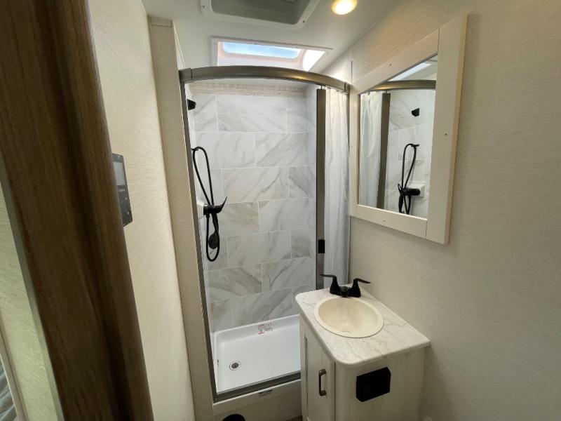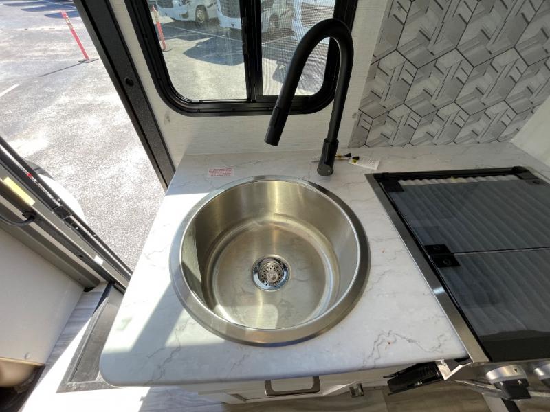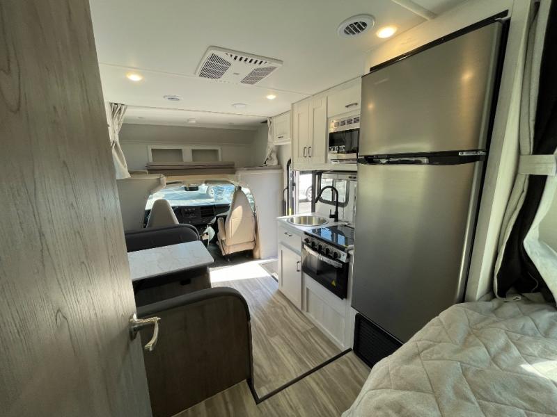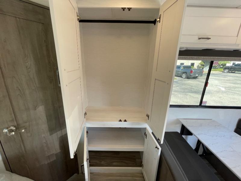 Looking for sleeping space for five, extra storage space, and loads of comfort in your next motorhome? This motorhome gives you a double-door basement storage allowing you to bring extra gear and an interior wardrobe and overhead cabinets so you can travel for a weekend getaway or a month-long vacation. You will have your own bed while your guests or kids sleep on the overhead bunk and booth dinette, and you will also be able to make meals in the galley kitchen and get cleaned up in your own full bathroom.