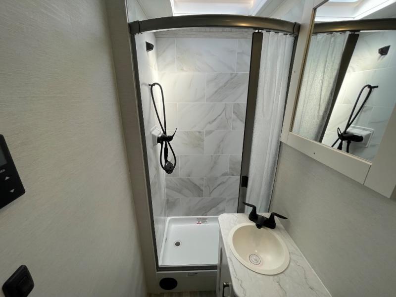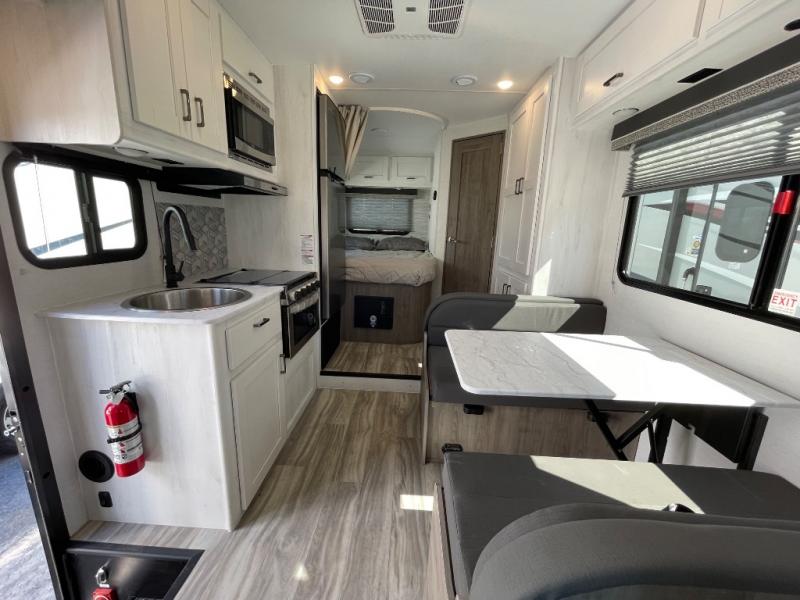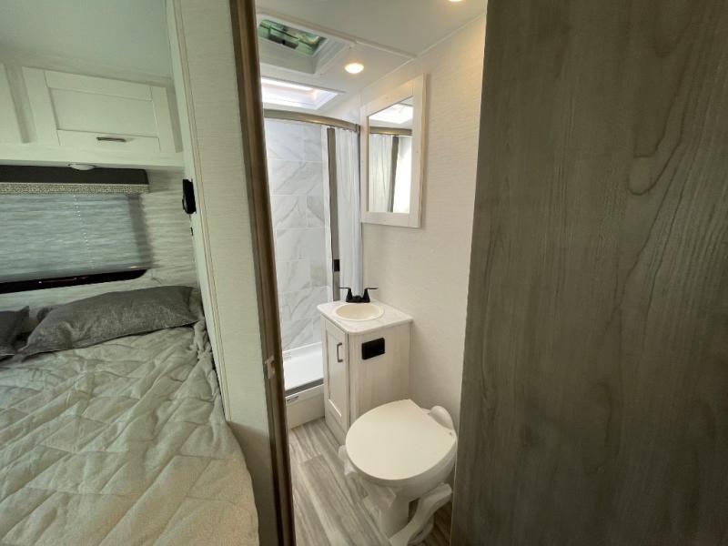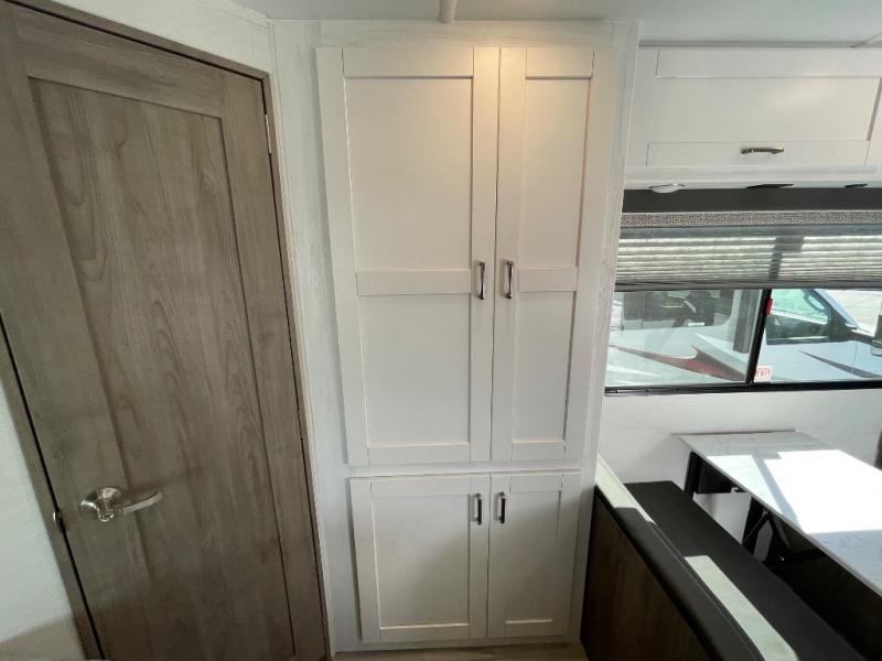 Looking for sleeping space for five, extra storage space, and loads of comfort in your next motorhome? This motorhome gives you a double-door basement storage allowing you to bring extra gear and an interior wardrobe and overhead cabinets so you can travel for a weekend getaway or a month-long vacation. You will have your own bed while your guests or kids sleep on the overhead bunk and booth dinette, and you will also be able to make meals in the galley kitchen and get cleaned up in your own full bathroom.