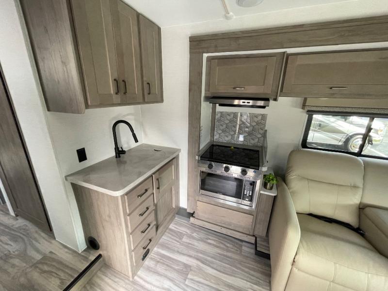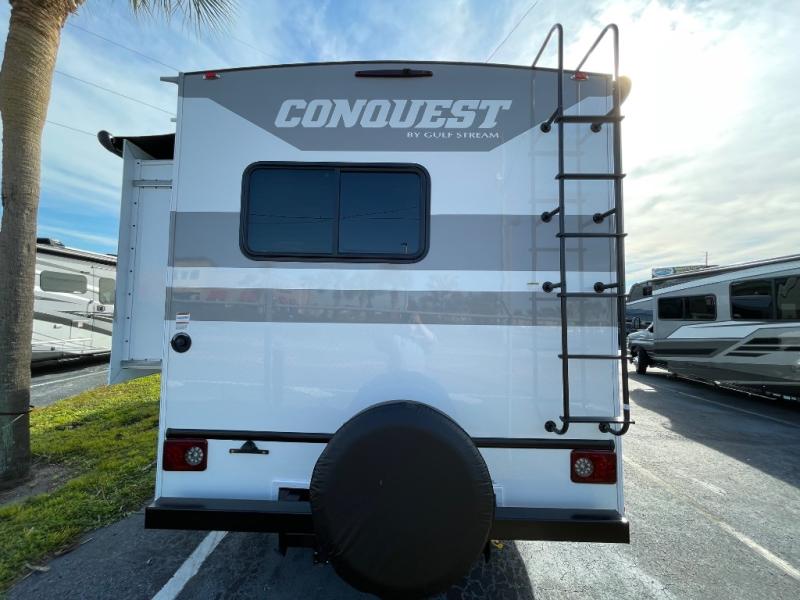 Each one of these Gulf Stream RV Conquest Class C gas motorhomes is built with a Cradle of Strength® on either the Ford E350 or E450 chassis depending on the model! Their construction also consists of a welded aluminum perimeter frame, an EPDM rubber roof, and high gloss white fiberglass sidewalls with Azdel substrate to prevent rotting. The included Conquest Luxury Package comes with vinyl flooring throughout for an easier clean, upgraded designer graphics, and a multimedia center with a 9" screen, Apple CarPlay and Android Auto and an AM/FM stereo. The exterior is just as accommodating with its hot and cold shower, 7,500 lb. hitch, electric awning with LED lights, and more!