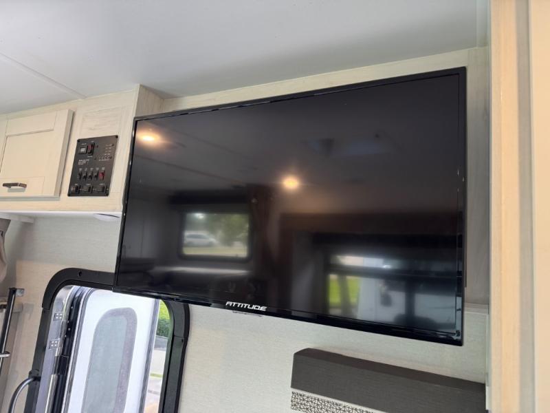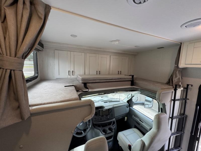 Set out to new destinations with this Conquest Class C gas motorhome to travel and stay in comfort! Your family will love having their own space to sleep with the bunk over the cab, which will be a hot spot for sure, the jackknife sofa and the booth dinette in the main living area, and the RV queen bed in the rear private bedroom. The kitchen offers all the appliances necessary to keep the crew fed, like a three-burner range, a microwave oven, and a double-door 12V refrigerator/freezer. You might even decide to add the optional outdoor entertainment center for more fun.