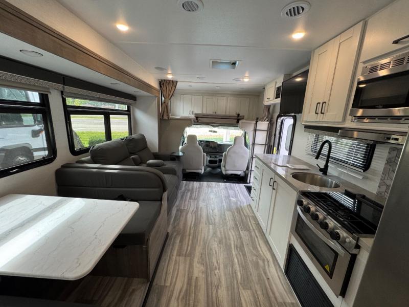 Each one of these Gulf Stream RV Conquest Class C gas motorhomes is built with a Cradle of Strength® on either the Ford E350 or E450 chassis depending on the model! Their construction also consists of a welded aluminum perimeter frame, an EPDM rubber roof, and high gloss white fiberglass sidewalls with Azdel substrate to prevent rotting. The included Conquest Luxury Package comes with vinyl flooring throughout for an easier clean, upgraded designer graphics, a dual-mounted stereo, and a back-up camera for easy parking.