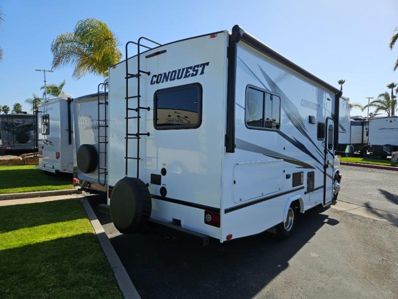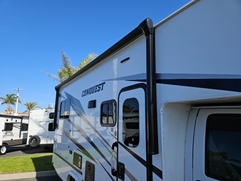 Each one of these Gulf Stream RV Conquest Class C LE Series gas motorhomes is built with a Cradle of Strength® on a Ford E350 chassis and a 7.3L V8 engine, or you can choose the optional Chevy chassis with a 6.0L V8 engine! Their construction also consists of a welded aluminum perimeter frame, an EPDM rubber roof, and a white fiberglass exterior that is ultra slick. There is solid wood cabinetry inside, along with upgraded interior fabrics, and two decor choices to best fit your style.