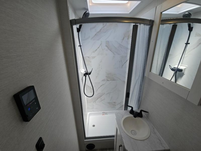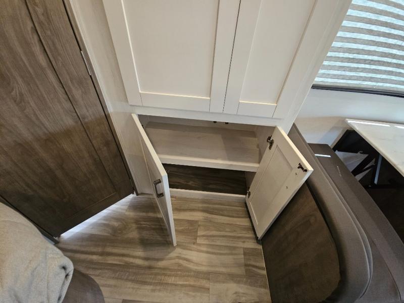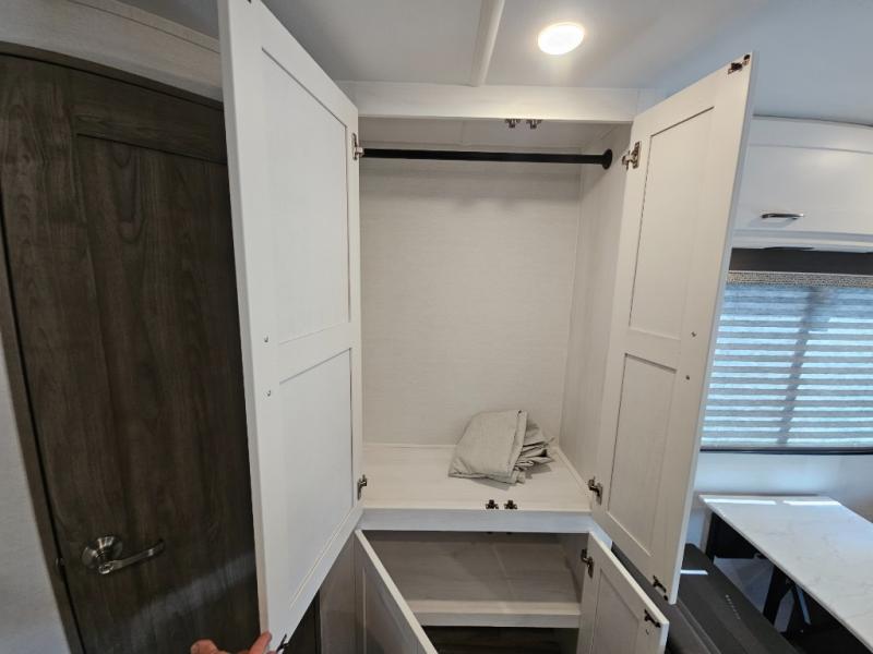 Looking for sleeping space for five, extra storage space, and loads of comfort in your next motorhome? This motorhome gives you a double-door basement storage allowing you to bring extra gear and an interior wardrobe and overhead cabinets so you can travel for a weekend getaway or a month-long vacation. You will have your own bed while your guests or kids sleep on the overhead bunk and booth dinette, and you will also be able to make meals in the galley kitchen and get cleaned up in your own full bathroom.