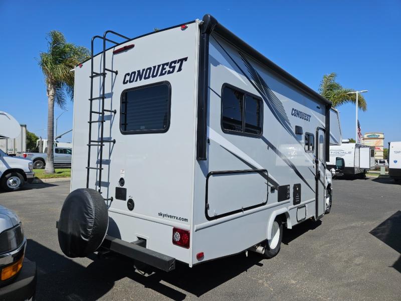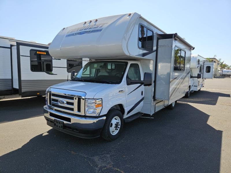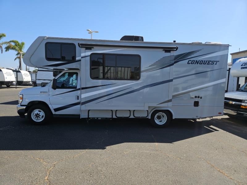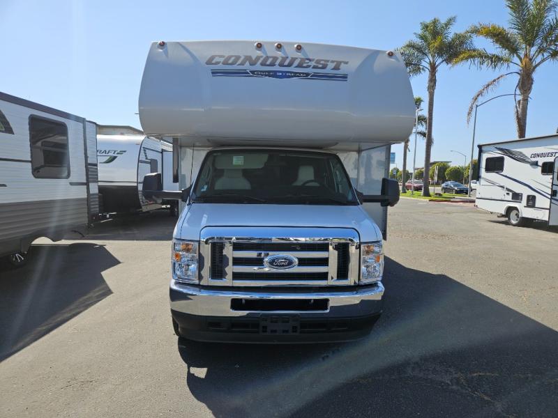 Each one of these Gulf Stream RV Conquest Class C gas motorhomes is built with a Cradle of Strength® on either the Ford E350 or E450 chassis depending on the model! Their construction also consists of a welded aluminum perimeter frame, an EPDM rubber roof, and high gloss white fiberglass sidewalls with Azdel substrate to prevent rotting. The included Conquest Luxury Package comes with vinyl flooring throughout for an easier clean, upgraded designer graphics, and a multimedia center with a 9" screen, Apple CarPlay and Android Auto and an AM/FM stereo. The exterior is just as accommodating with its hot and cold shower, 7,500 lb. hitch, electric awning with LED lights, and more!