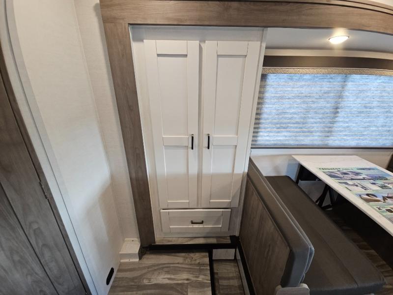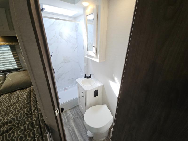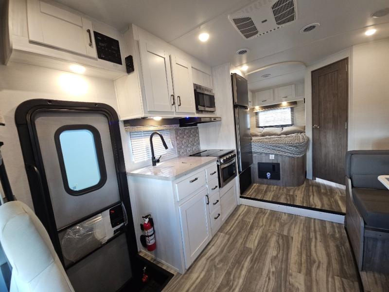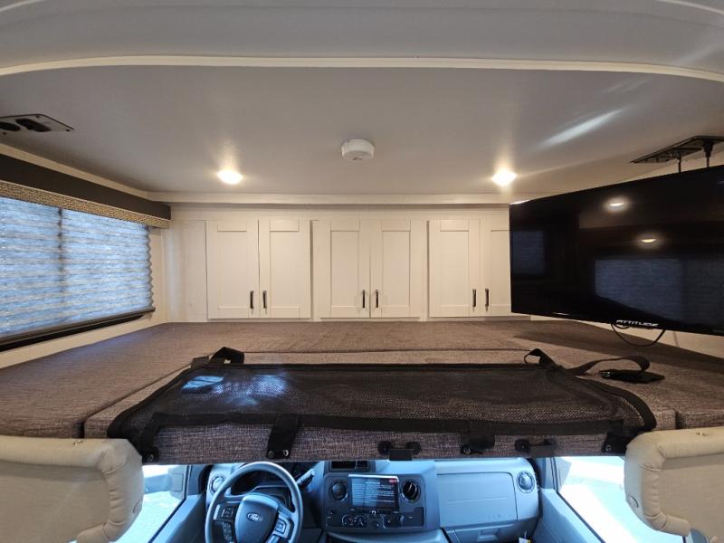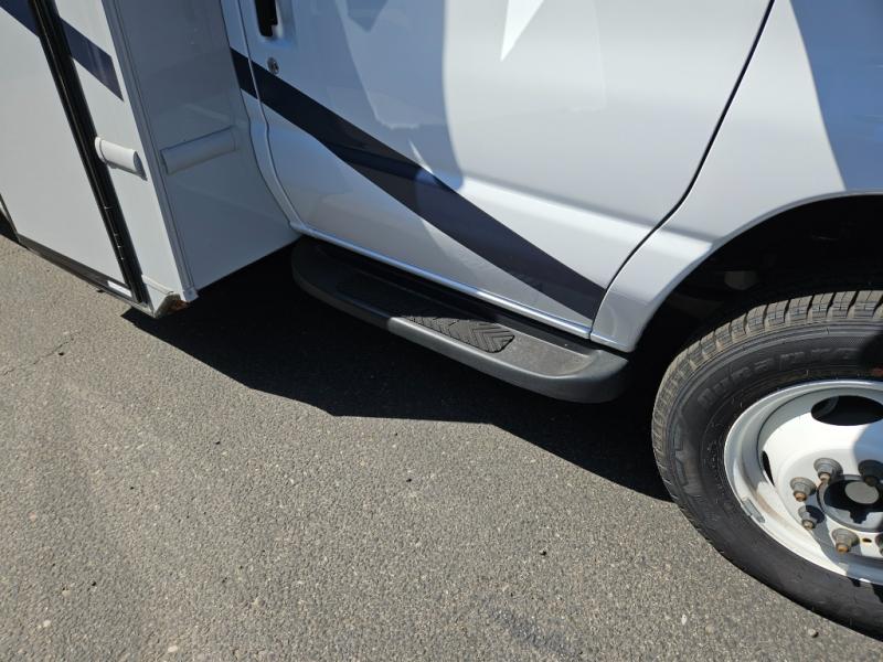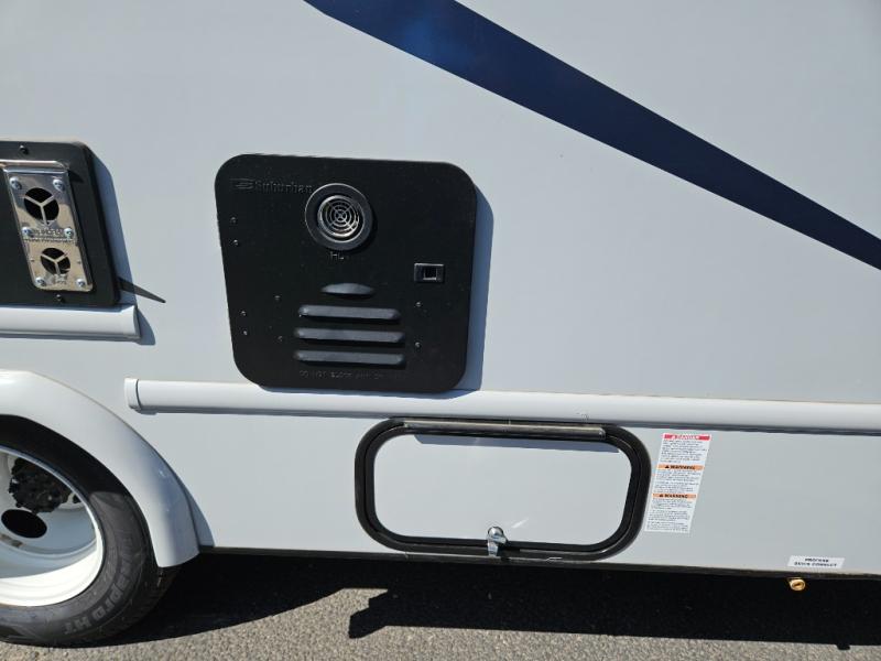 If you enjoy traveling the countryside during the day and pulling off into your favorite campground at night, then check out the comfortable accommodations this motorhome has to offer. For your group of five, you will have enough sleeping space between the RV queen bed in the rear, the overhead bunk above the cab, and the booth dinette. The kitchen provides everything you will need to cook all your meals and store leftovers, plus the dinette allows you to eat inside without worrying about bugs swarming you. The electric awning offers another living space outdoors, and it comes with LED lights so that you can party with the neighbors.